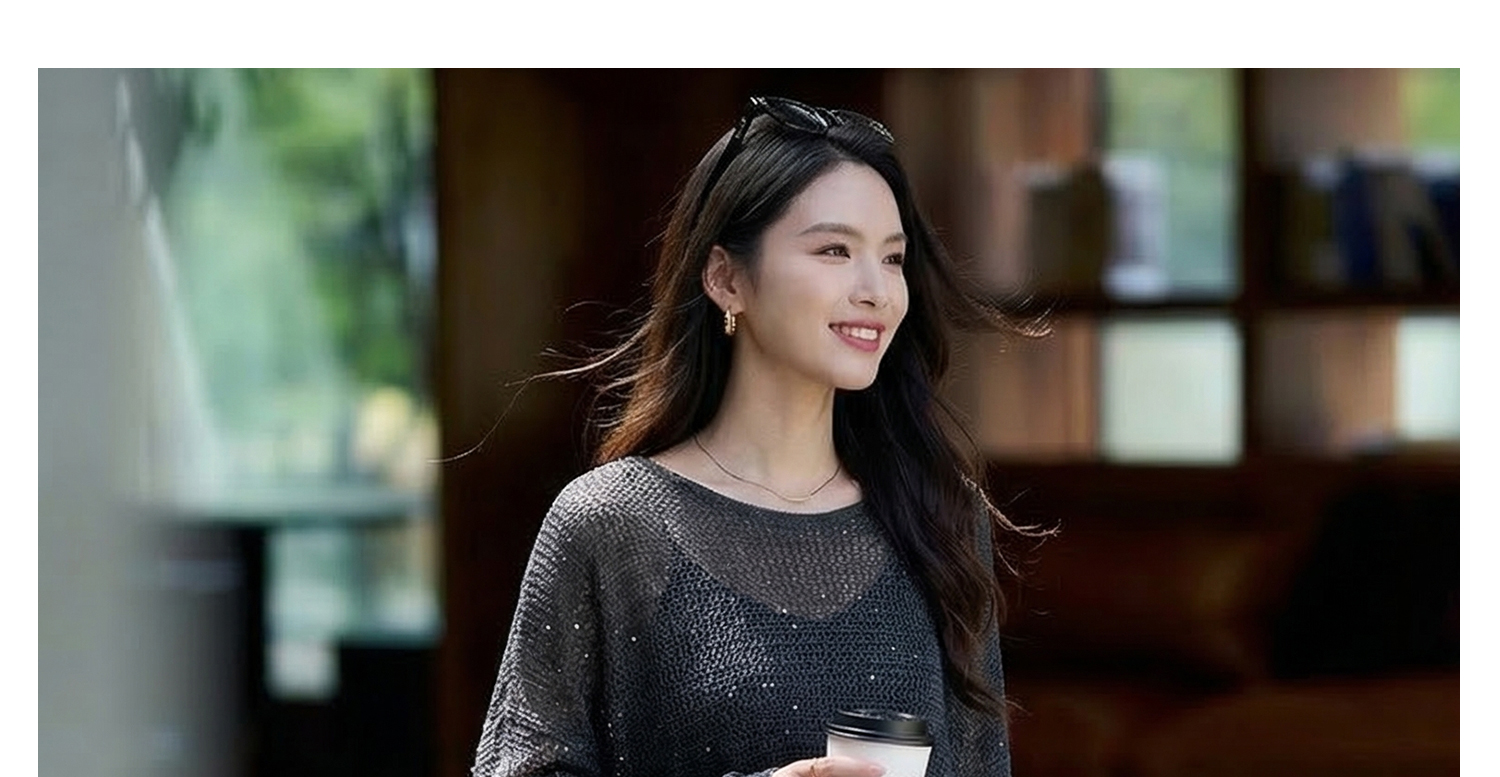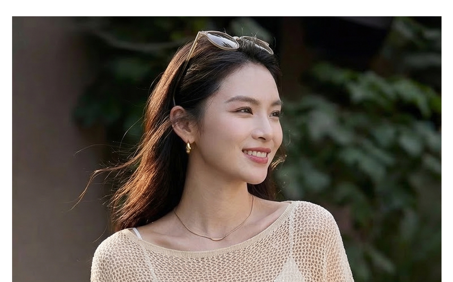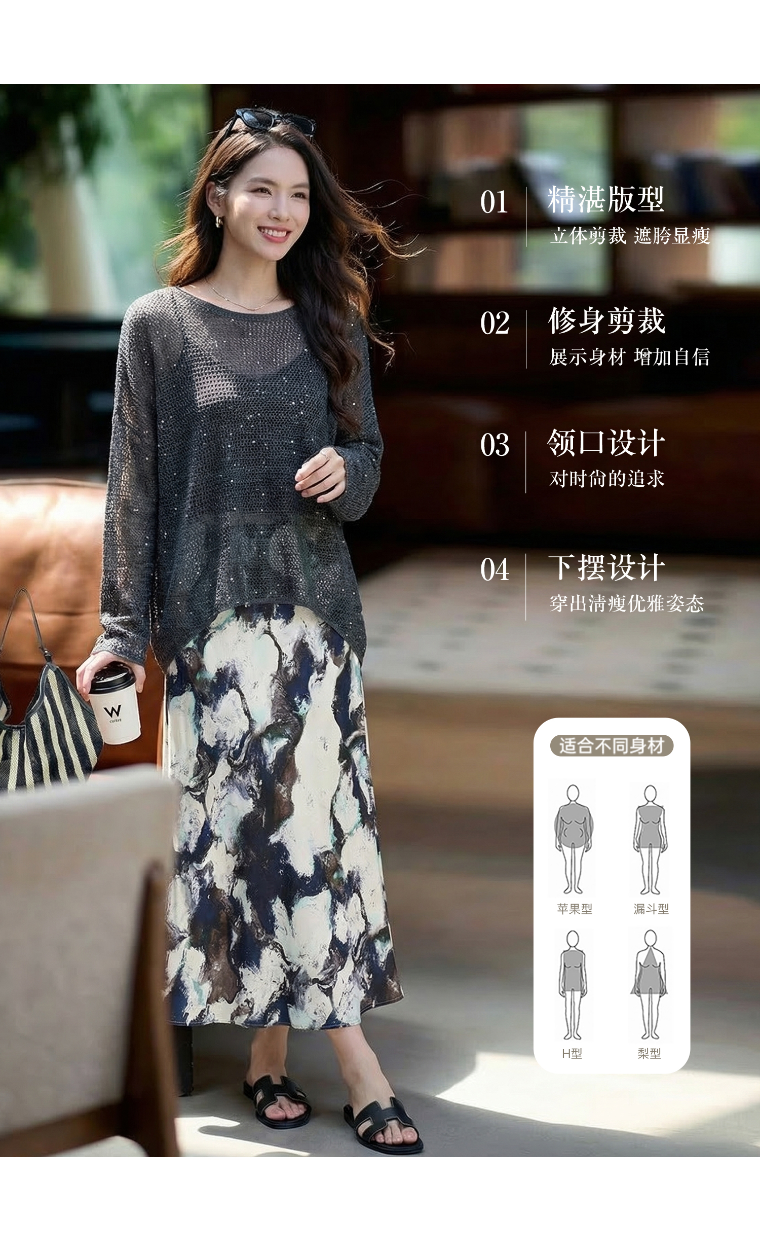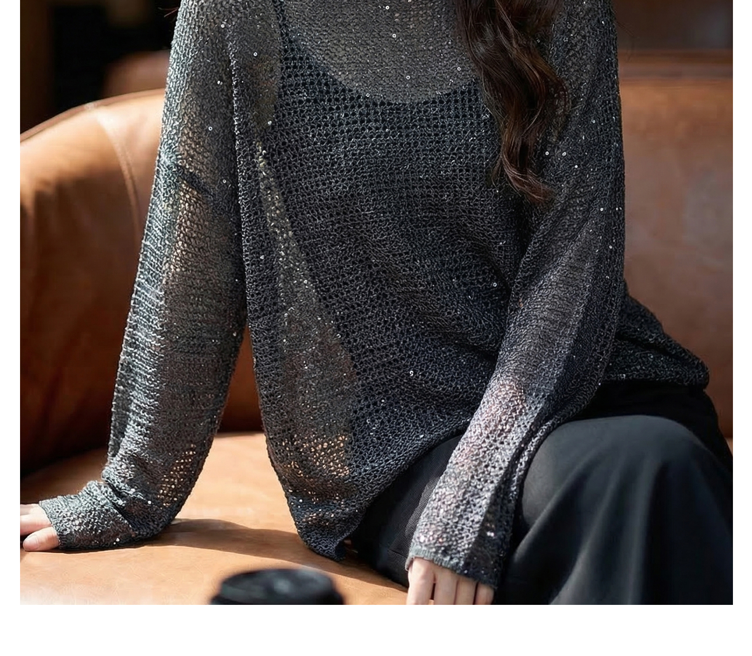 慵懒镂空针织罩衫 米思阳2026夏季新款圆领透视宽松薄款长袖防晒度假针织衫女1172