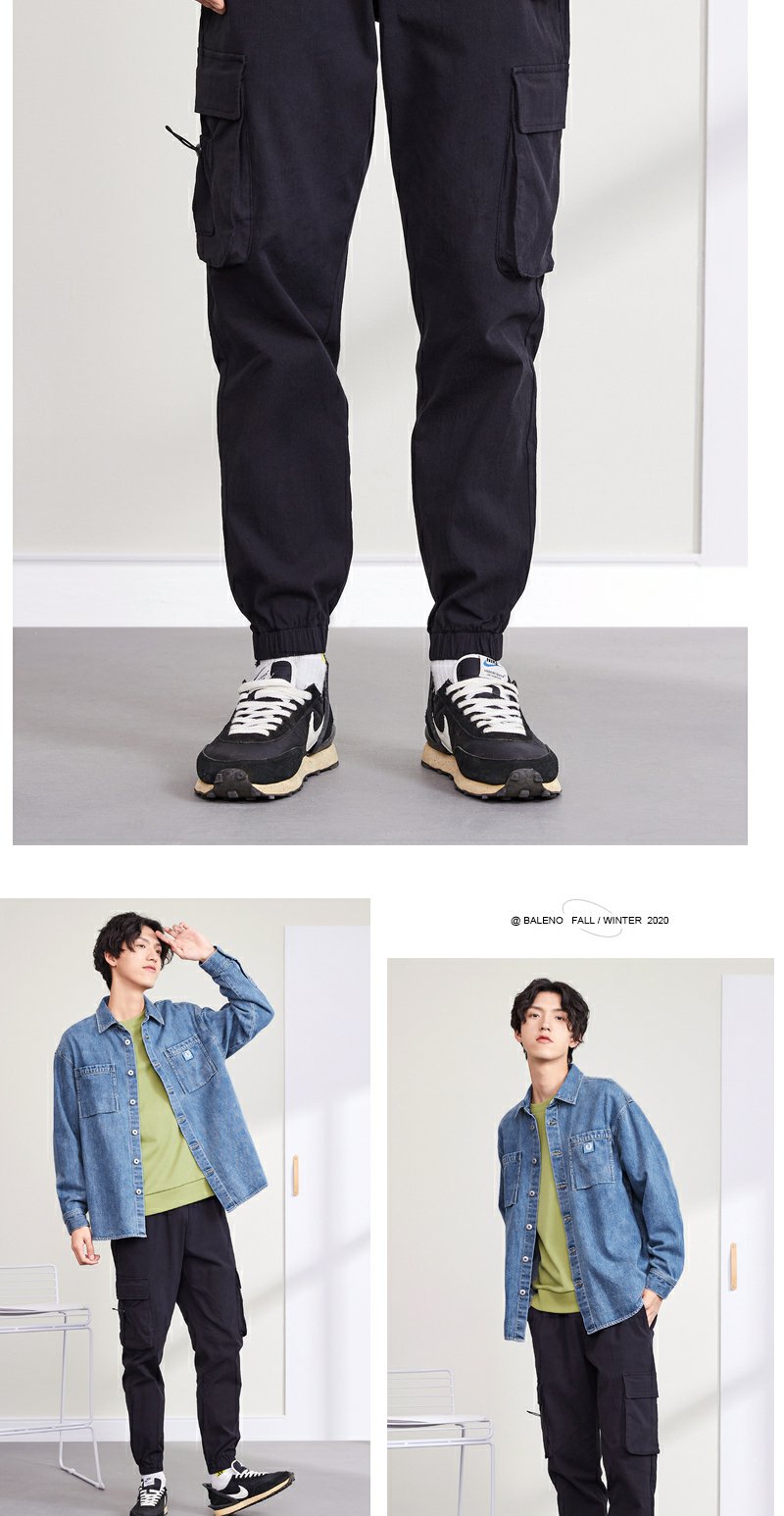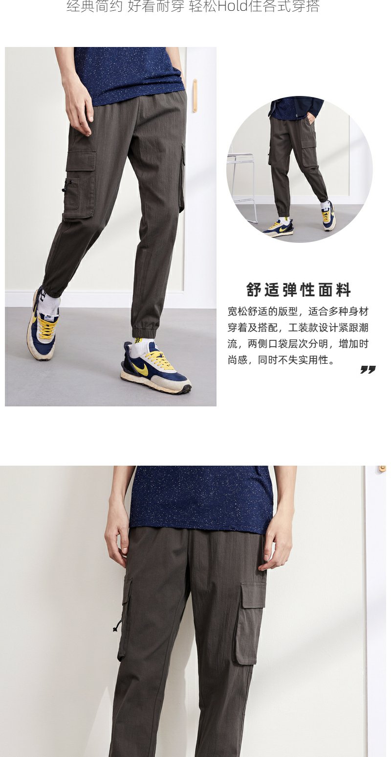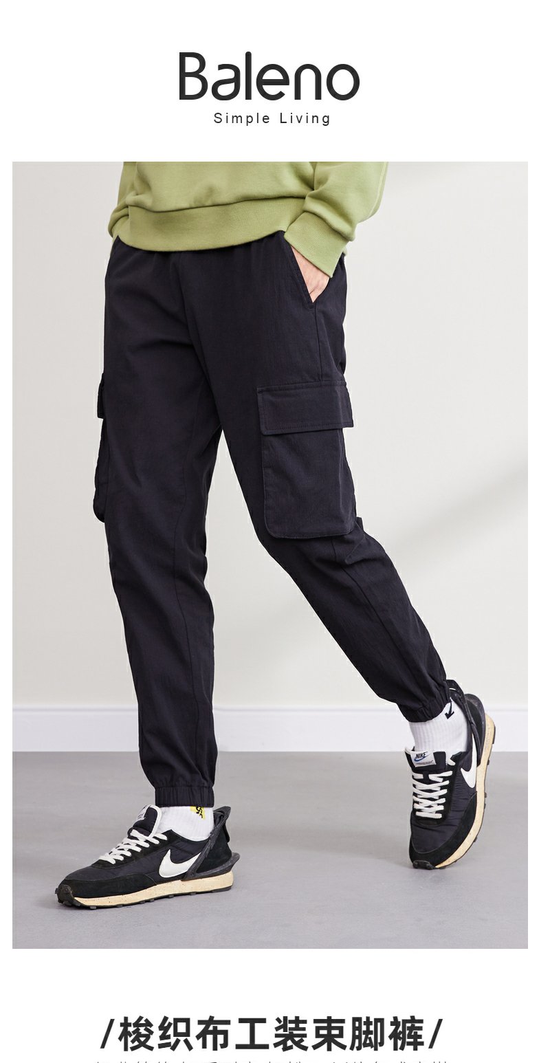 班尼路青年黑色束脚长裤潮流大口袋运动工装裤男