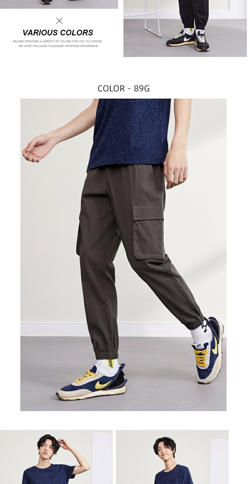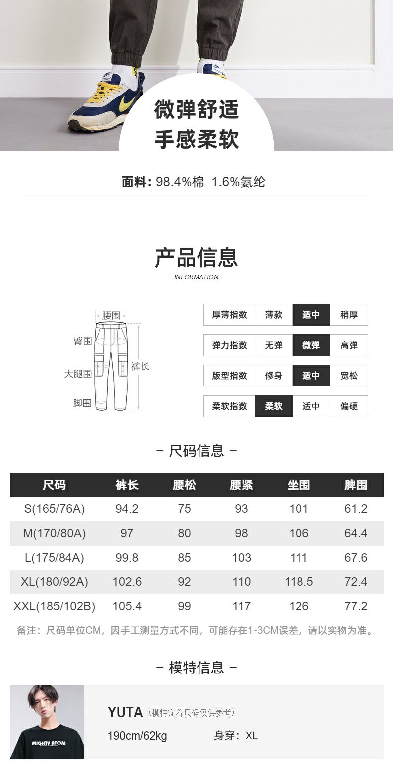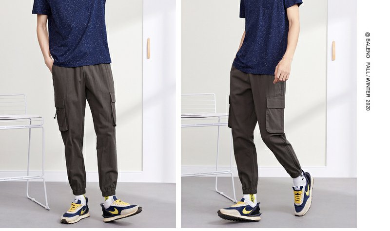 班尼路青年黑色束脚长裤潮流大口袋运动工装裤男