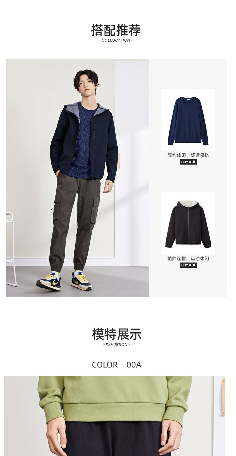 班尼路春季新款 运动外套男 轻薄透气户外休闲纯色连帽梭织风衣