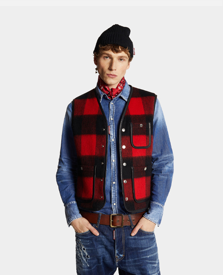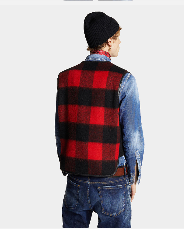 【一】DSQUARED2 男士格纹羊毛混纺马甲 格子色 S74FB0323 S78290 001F