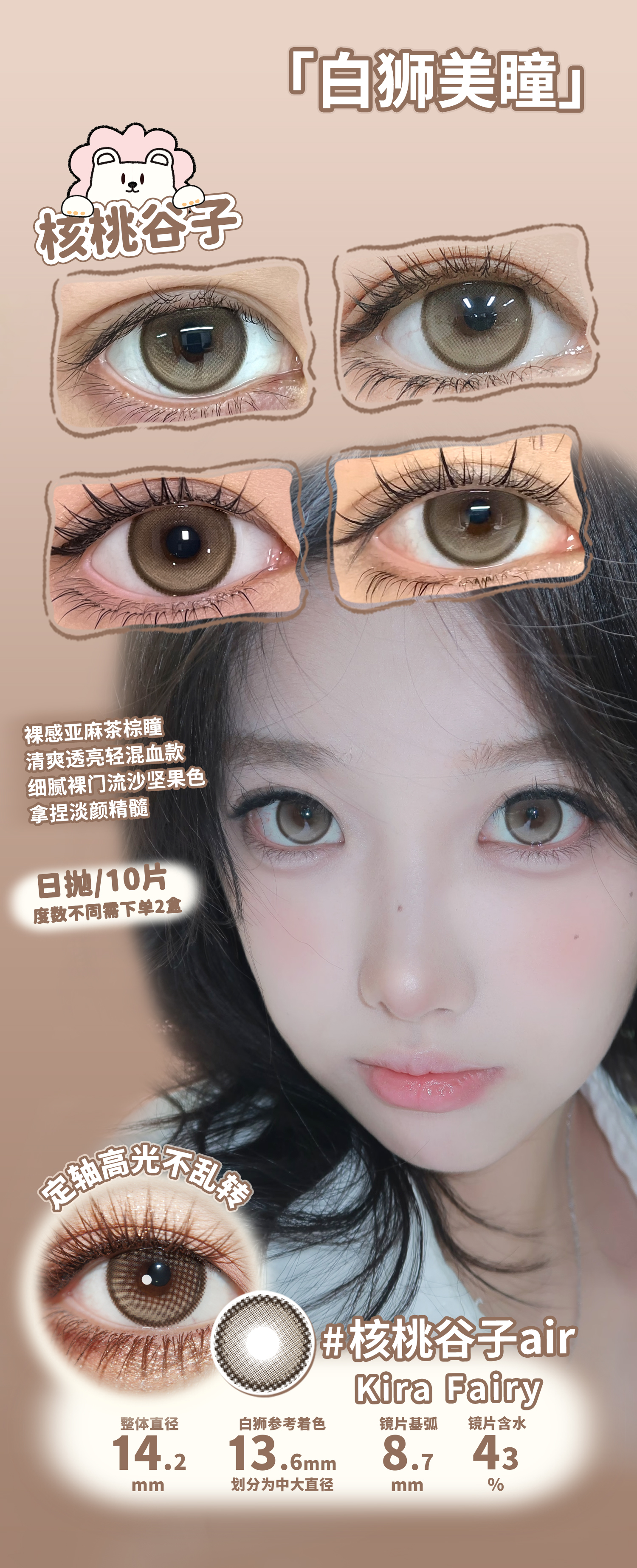 Kira Fairy旗下 ·【定轴高光设计】琥珀立正&核桃谷子air·14.2mm白狮参考着色中大直径 | 日抛十片装