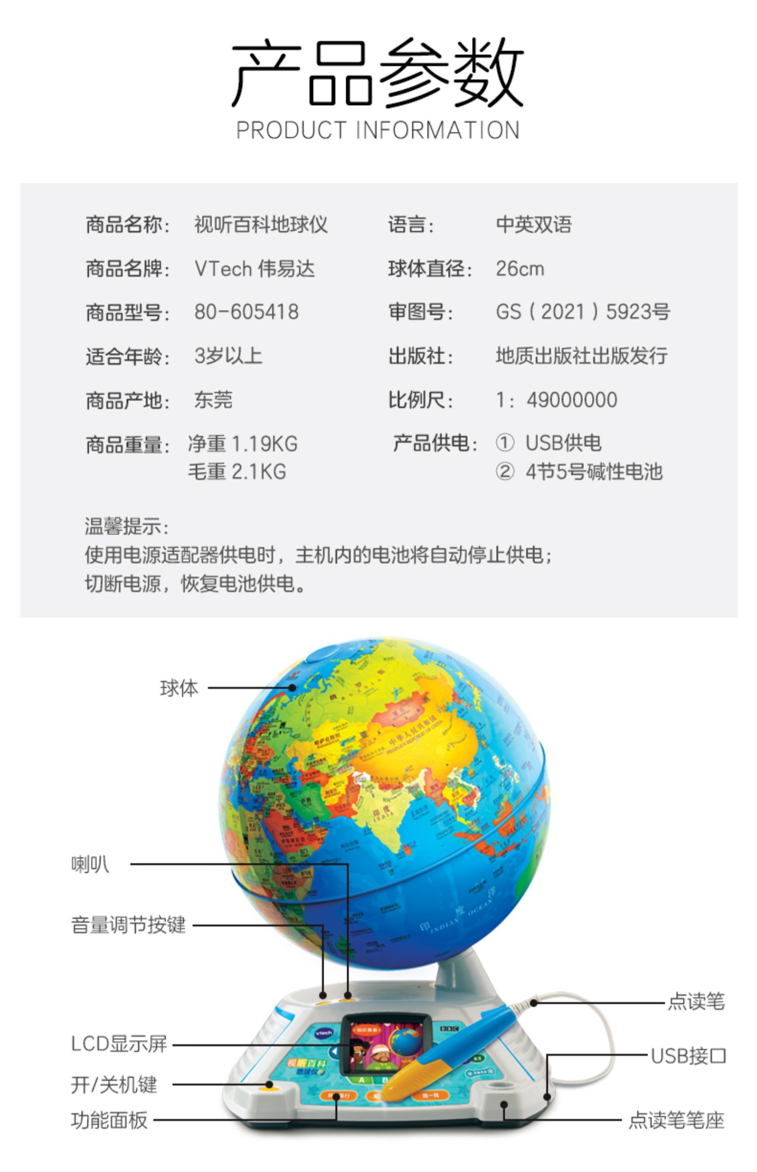 【合作商直发】香港伟易达视听百科地球仪点触发声地理启蒙AR点读早教机教具玩具礼物