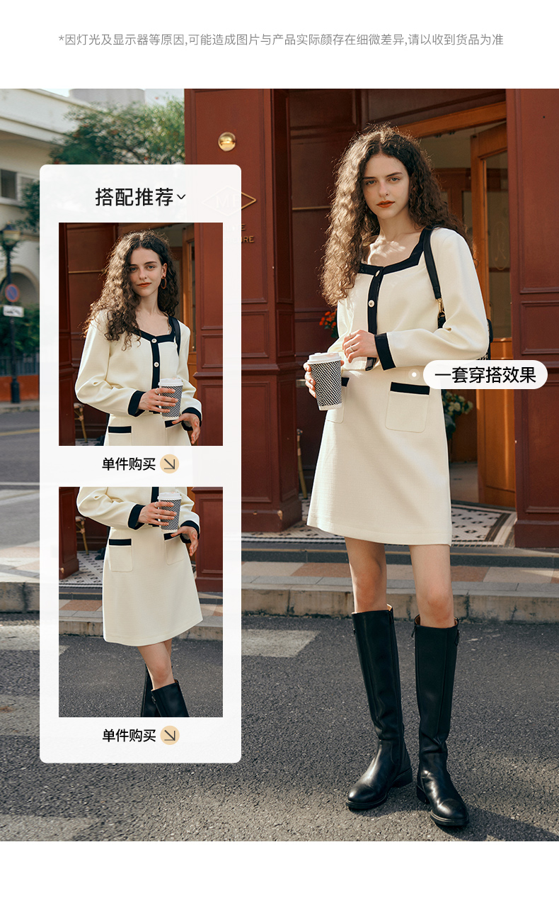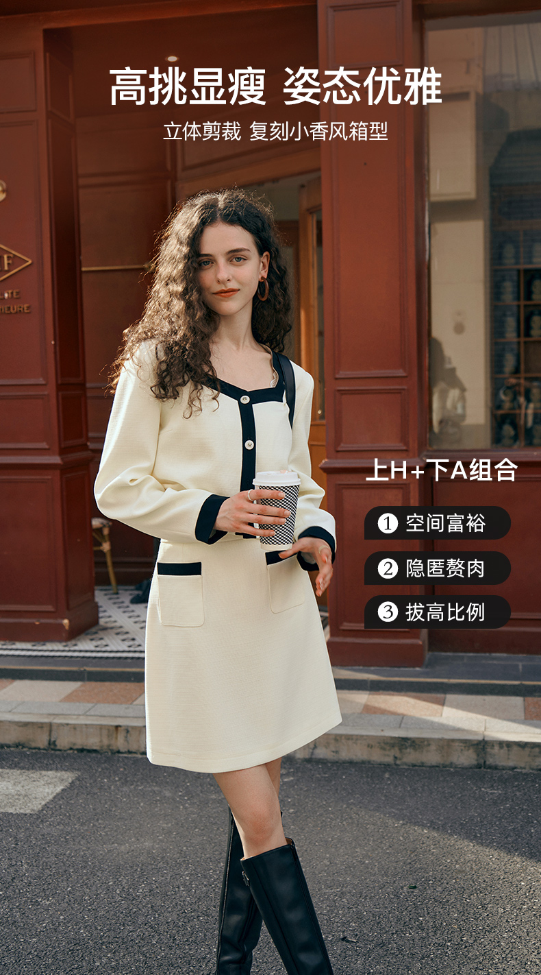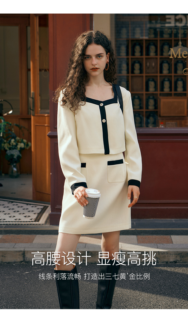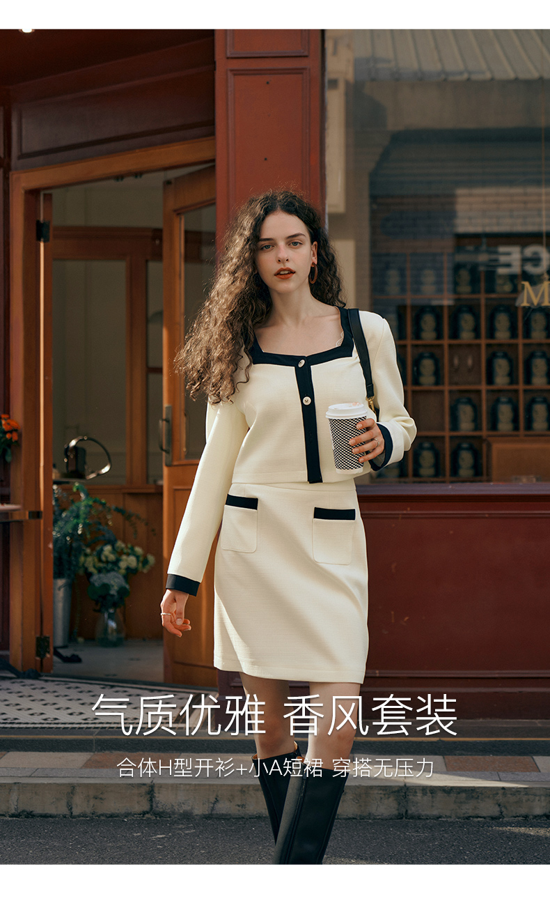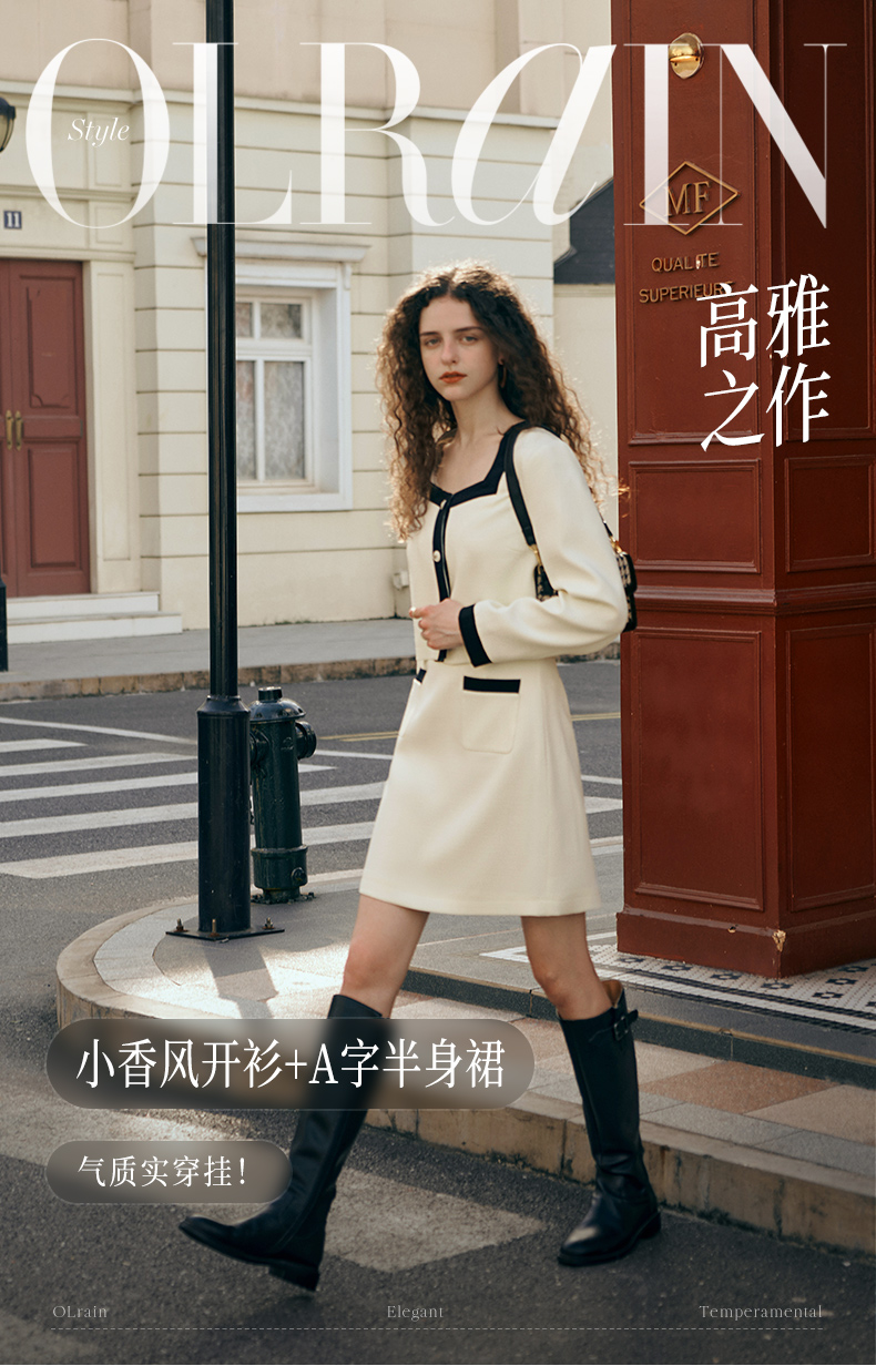 OLrain欧芮儿小香风时尚套装女秋季2023新款温柔风撞色裙子两件套