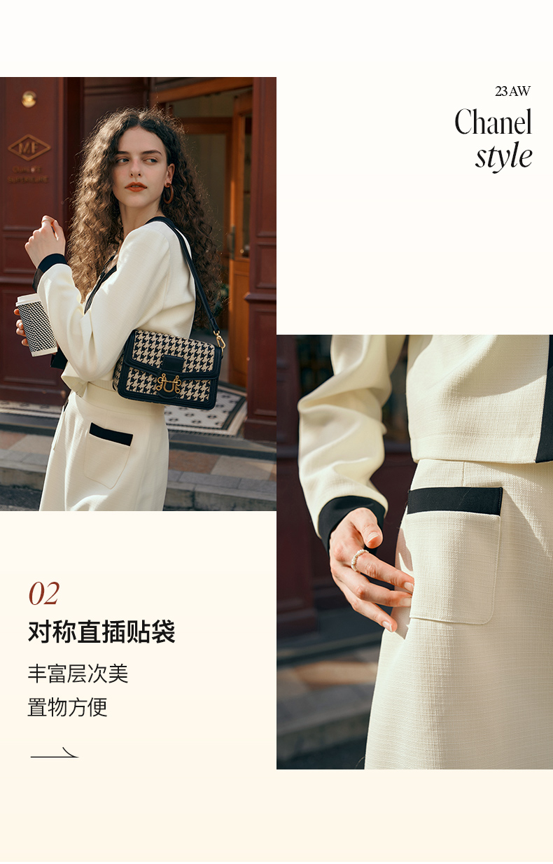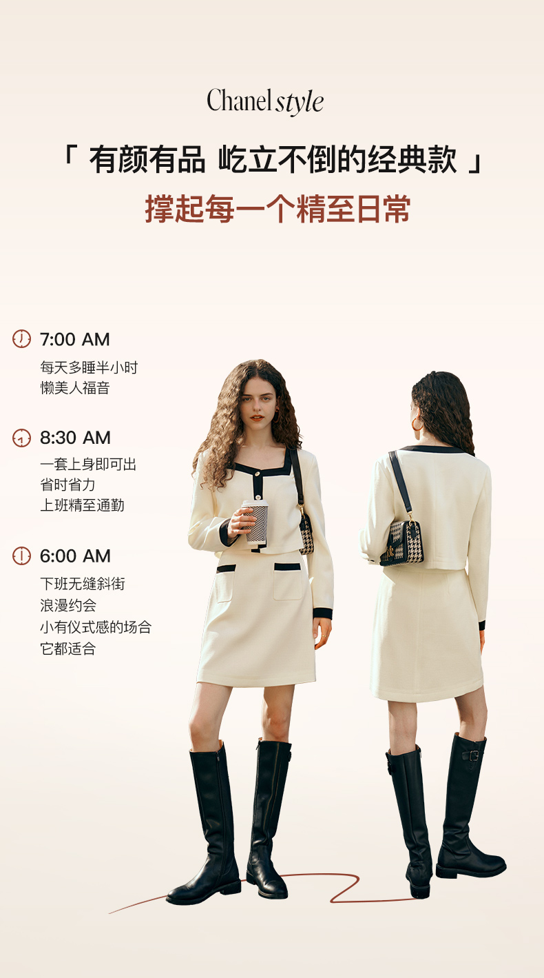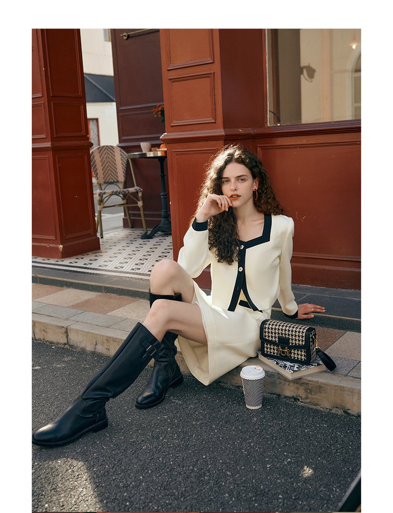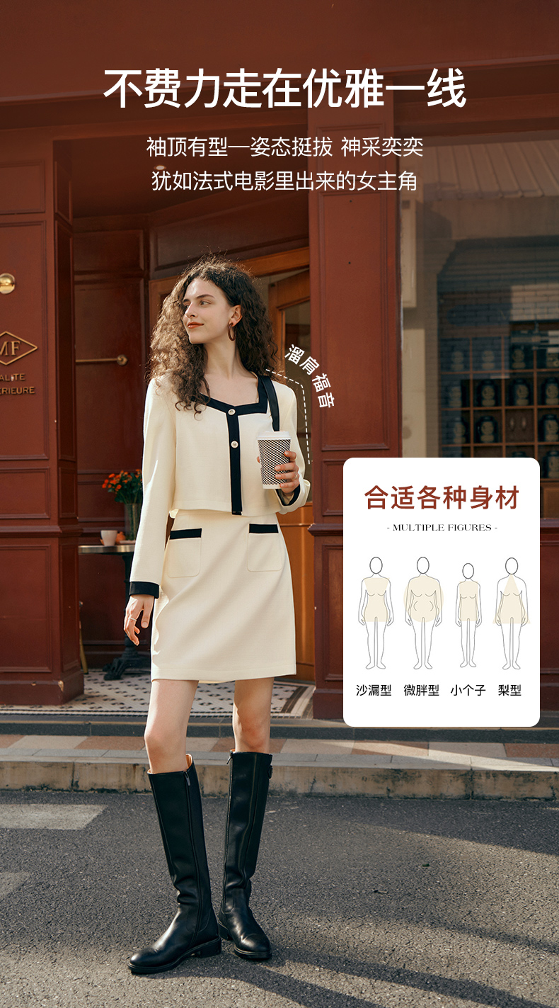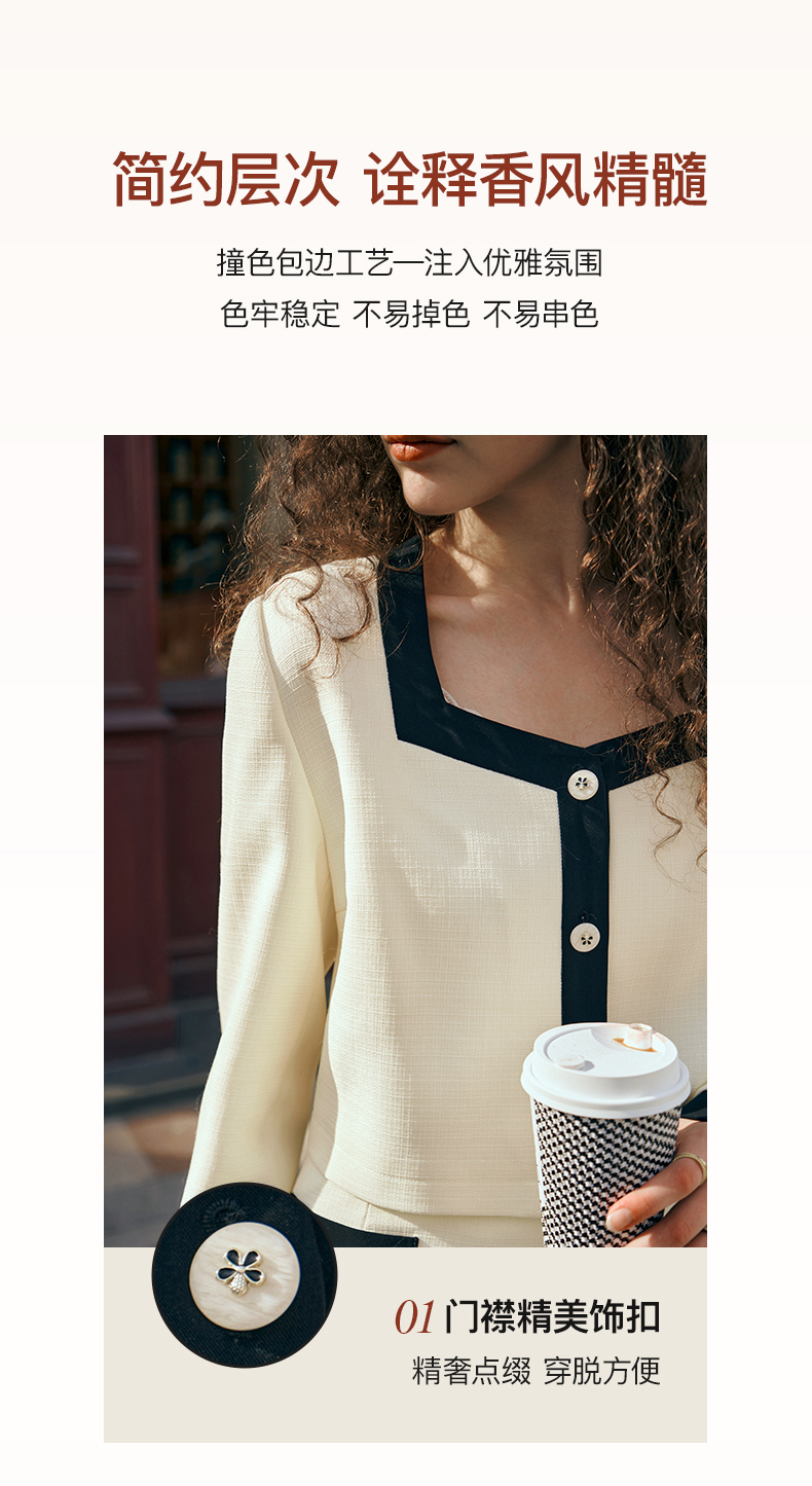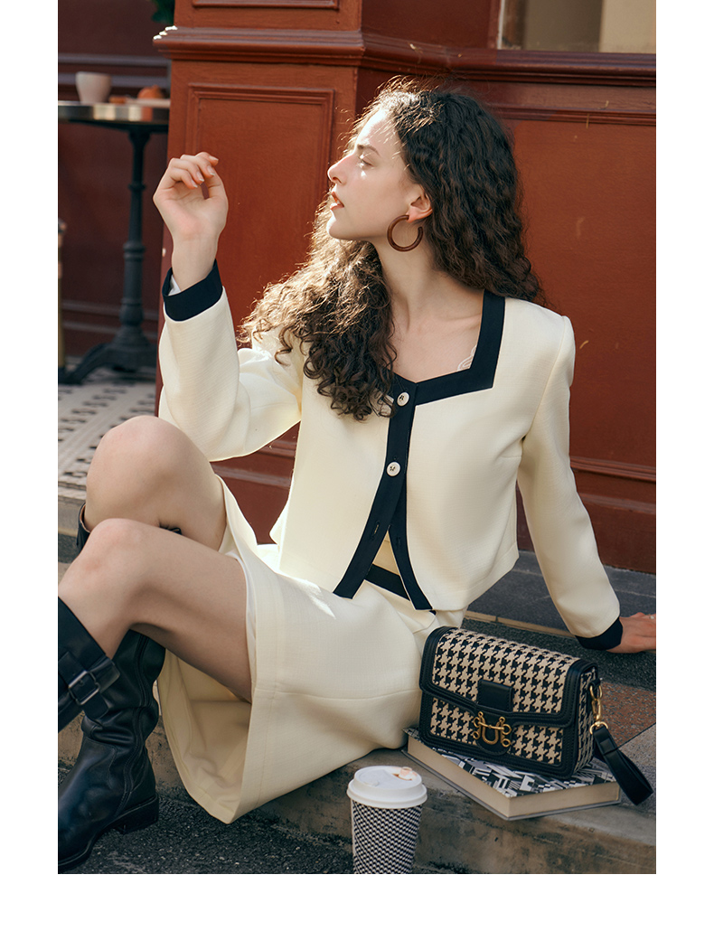 OLrain欧芮儿小香风时尚套装女秋季2023新款温柔风撞色裙子两件套
