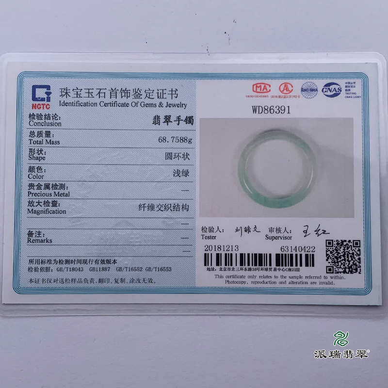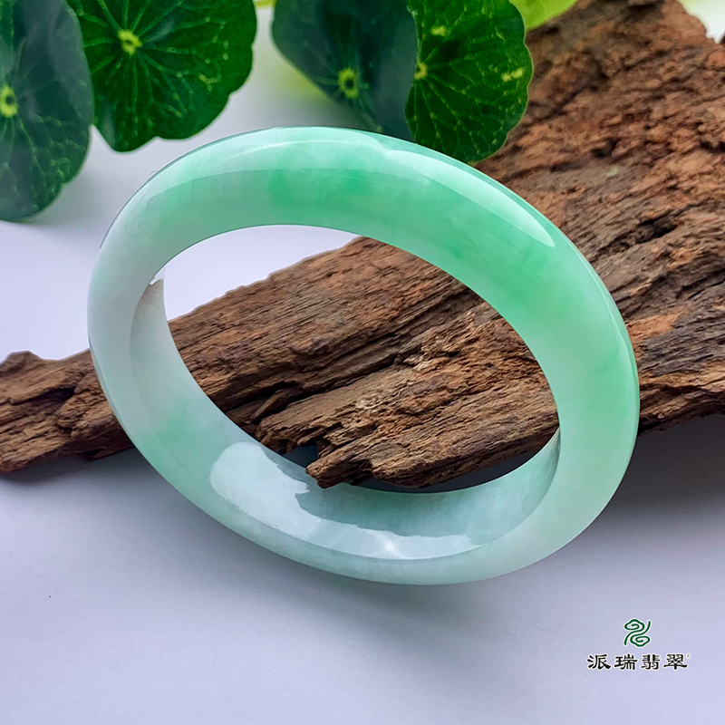 派瑞翡翠 翡翠手镯 糯种 浅绿