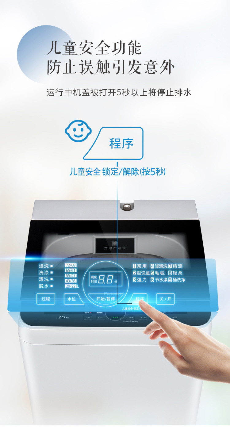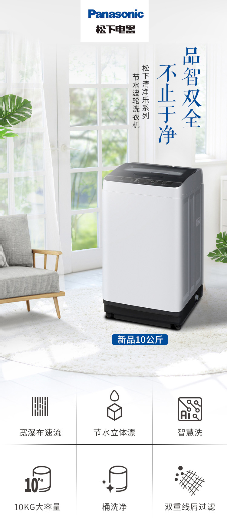 松下(Panasonic)XQB100-Q1E2A全自动新品大容量波轮洗衣机