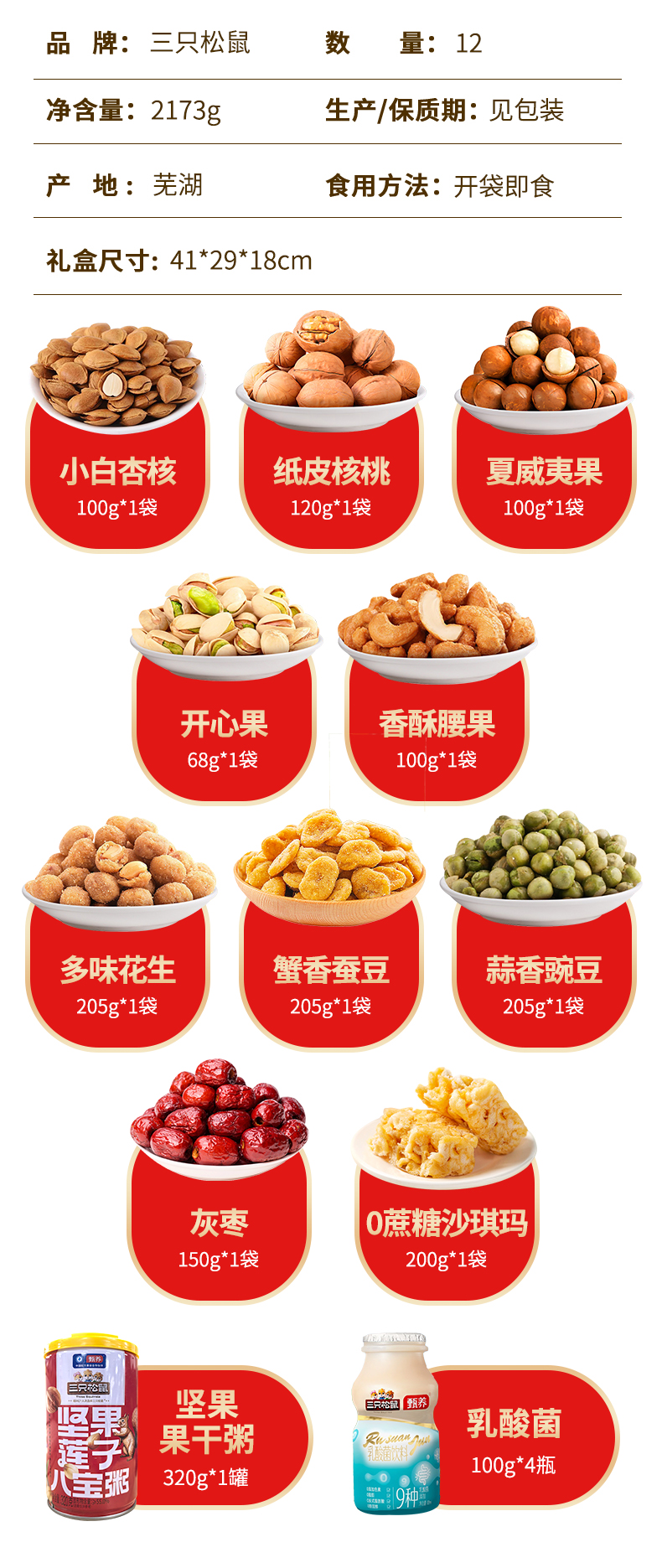 三只松鼠坚果零食大礼包年货送礼三只松鼠福瑞礼 2173g