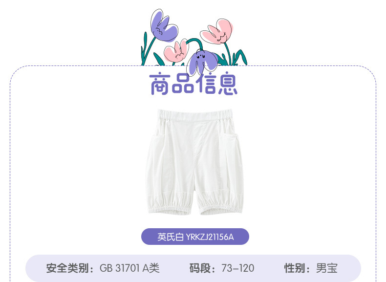 英氏-童衣类(夏)E1外着英梭中裤白100CM