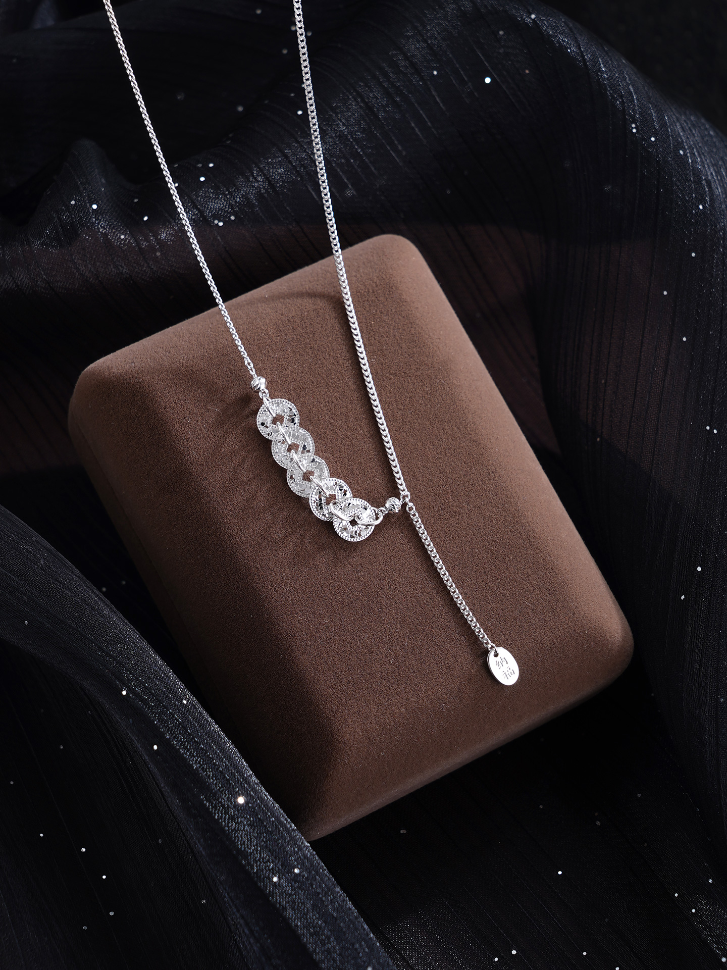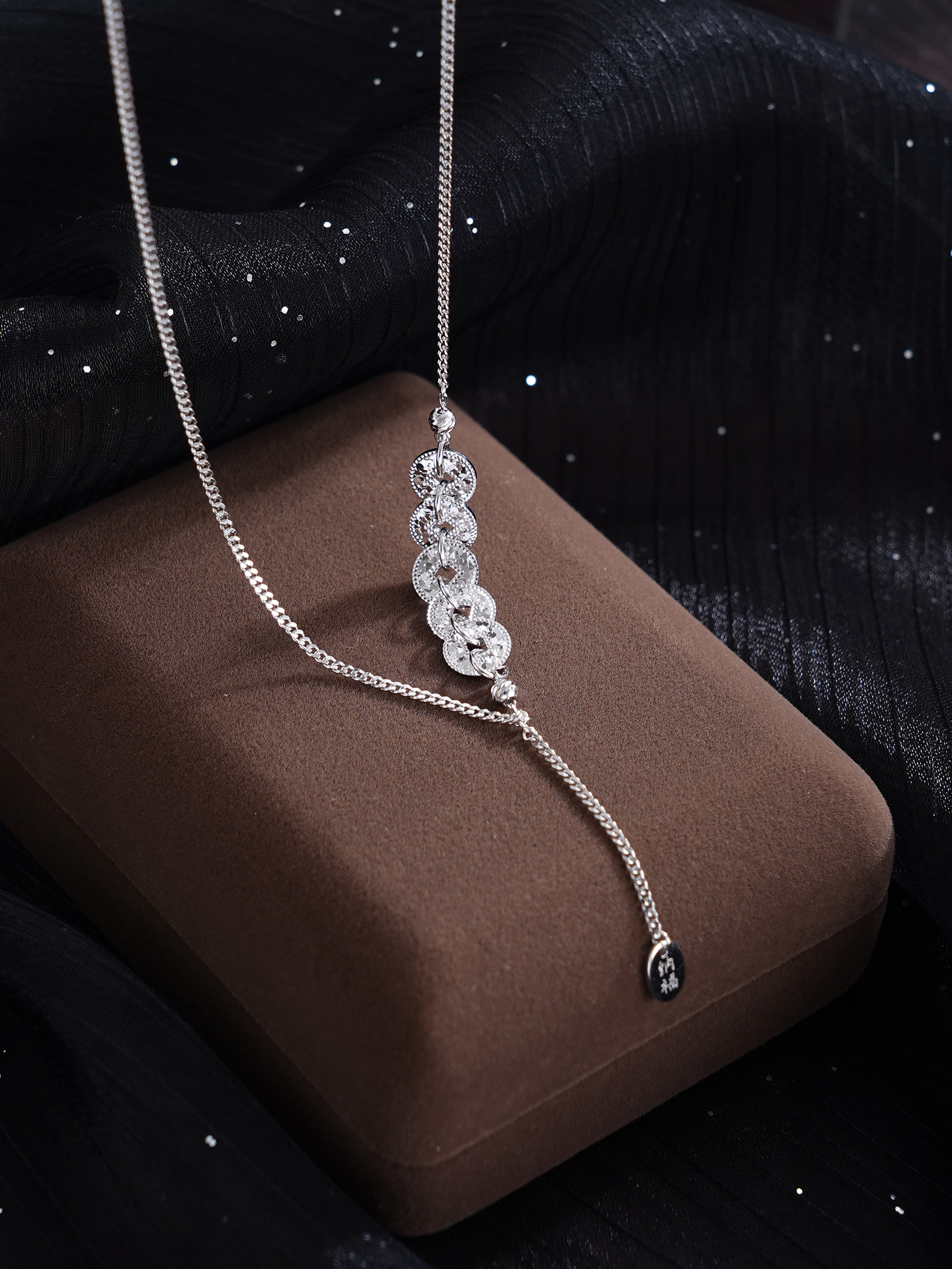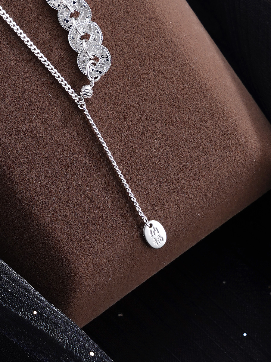 【规格】:钱币直径约0.7cm,流苏长约3.8cm,链周长约44cm