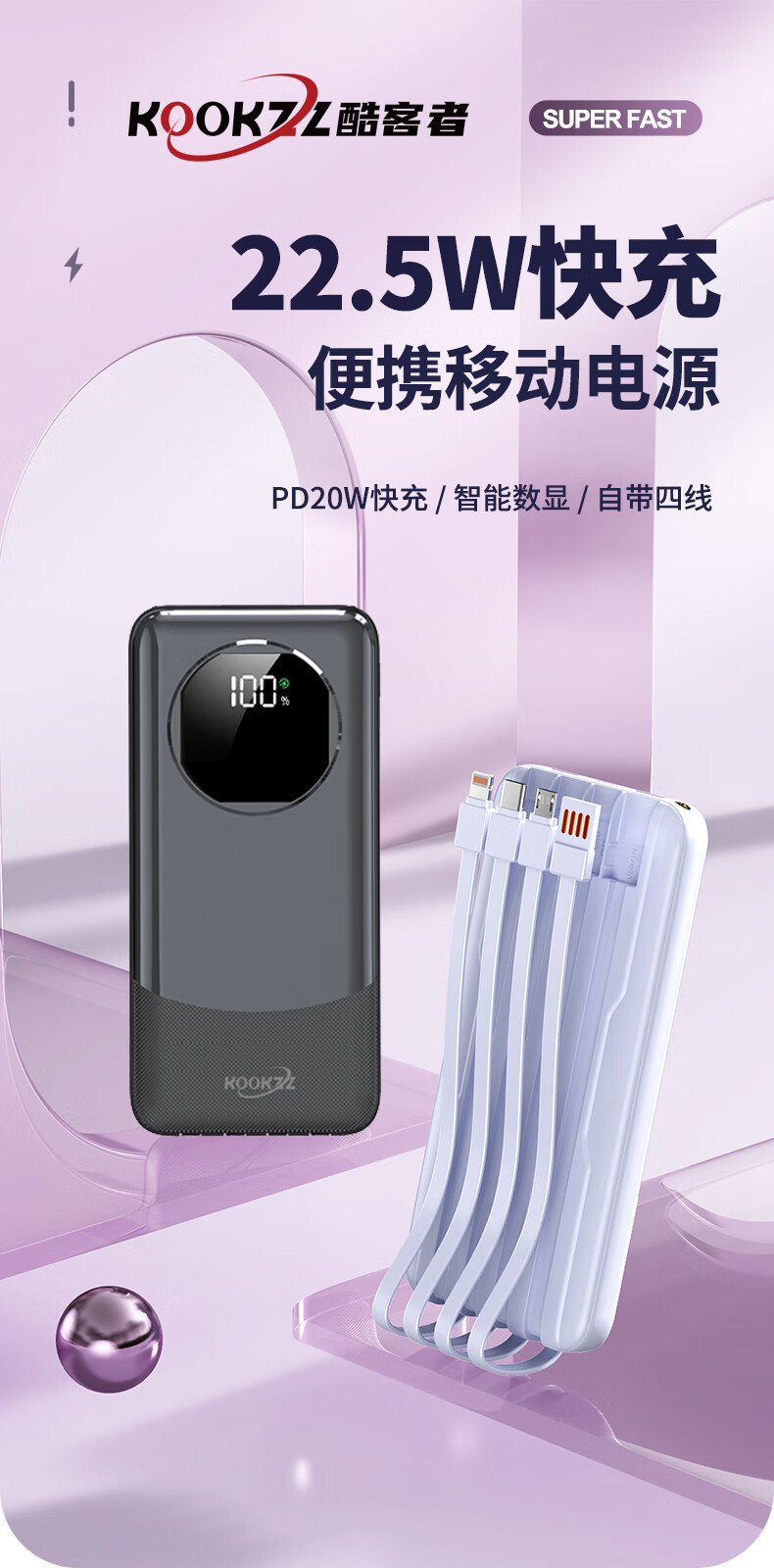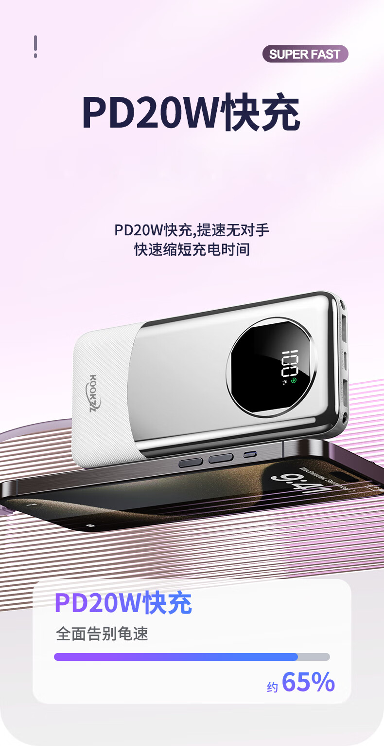 【分仓直发包邮】KOOKZZ酷客者数显超级快充移动电源(可上飞机)DY311