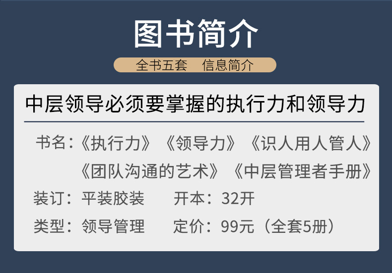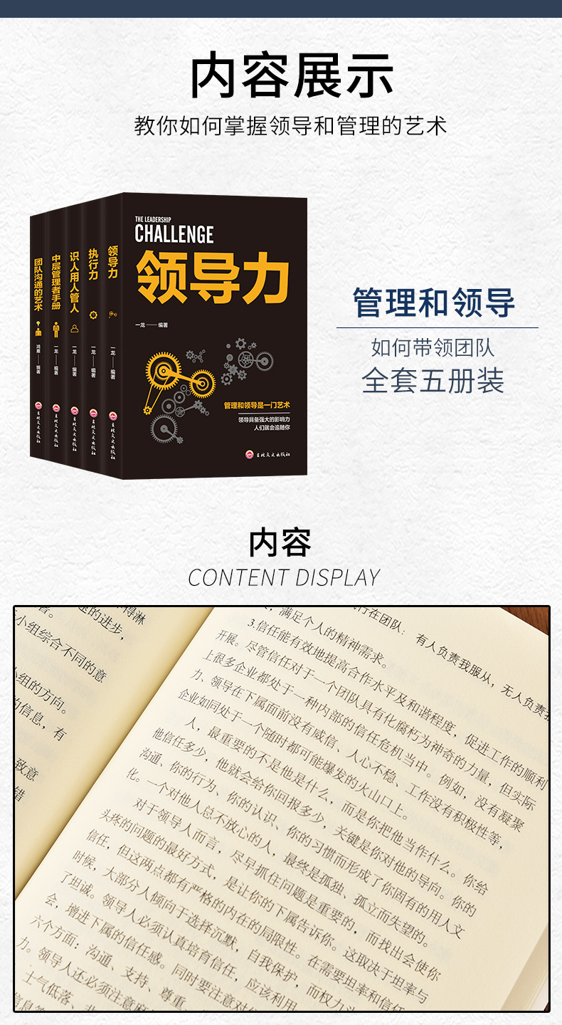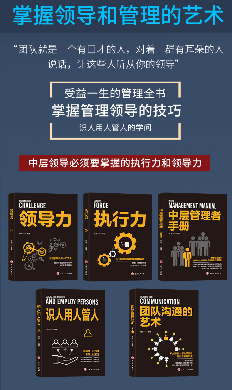 企业经营管理套装5册 领导力 识人用人管人 执行力 团队沟通艺术 中层管理者手册 团队领导法 市场营销企业管理学书籍畅销书