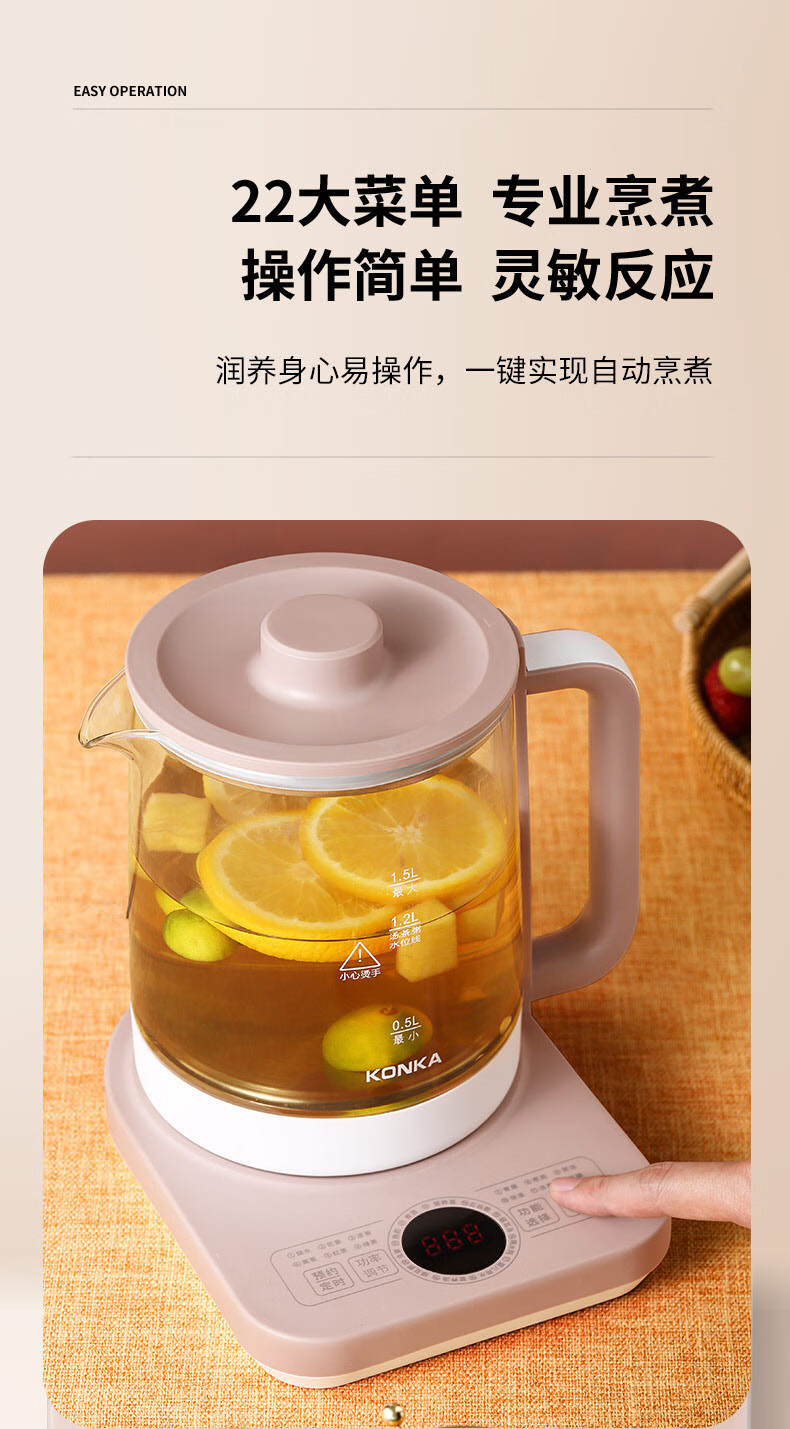 康佳(KONKA)养生壶1.5L家用多功能花茶煮茶壶电热水壶 KYSH-1509-M养生壶 1.5L
