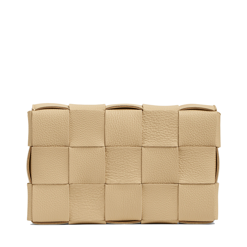 【包税】Bottega Veneta/葆蝶家 22春夏新款CASSETTE系列 女士燕麦色小牛皮双面Intreccio编织单肩斜挎豆腐包666870V17H19776