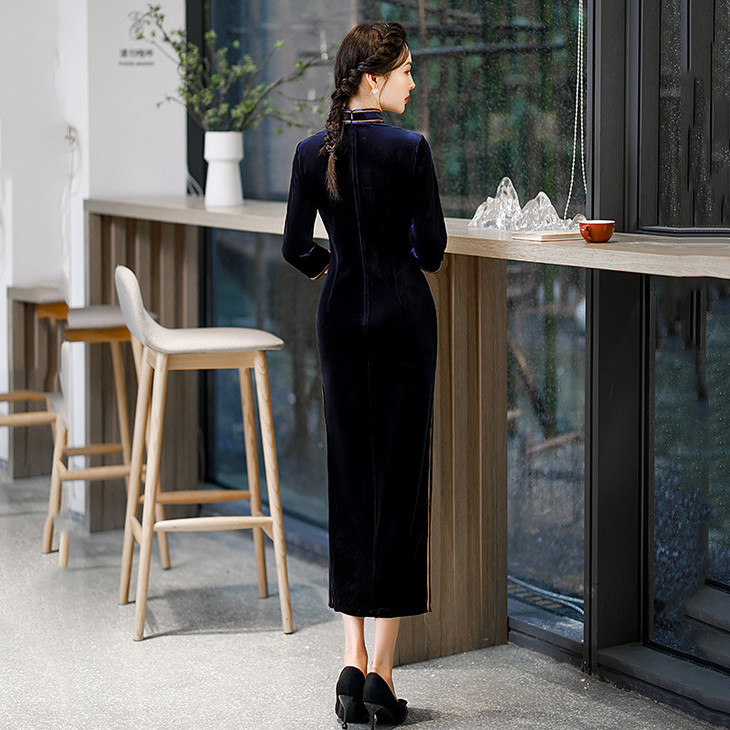 中式刺绣金丝绒国风长款改良旗袍 SC13543 商品图4