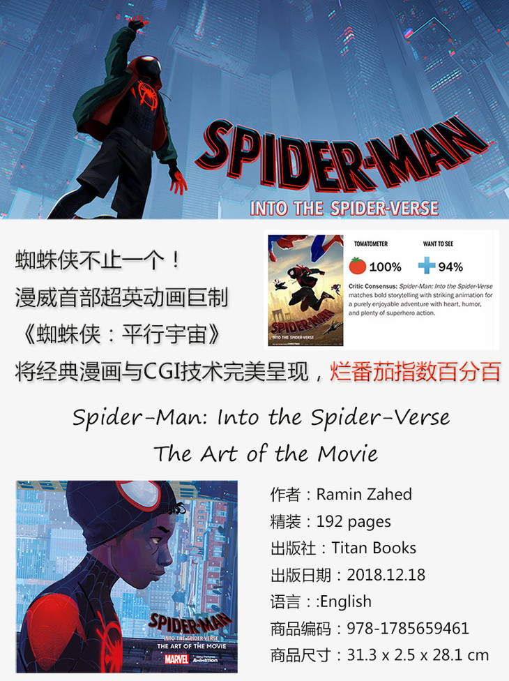 在《蜘蛛侠:平行宇宙——电影设定集》中发现蜘蛛侠宇宙的全新精彩故事!书中内容包括前期概念、定稿设计、艺术家评论以及之前未披露的脚本。