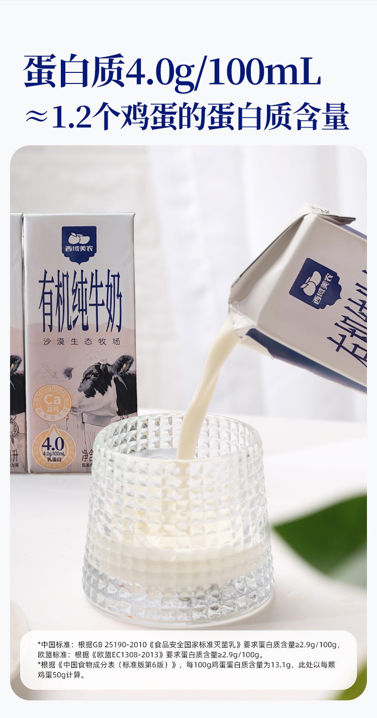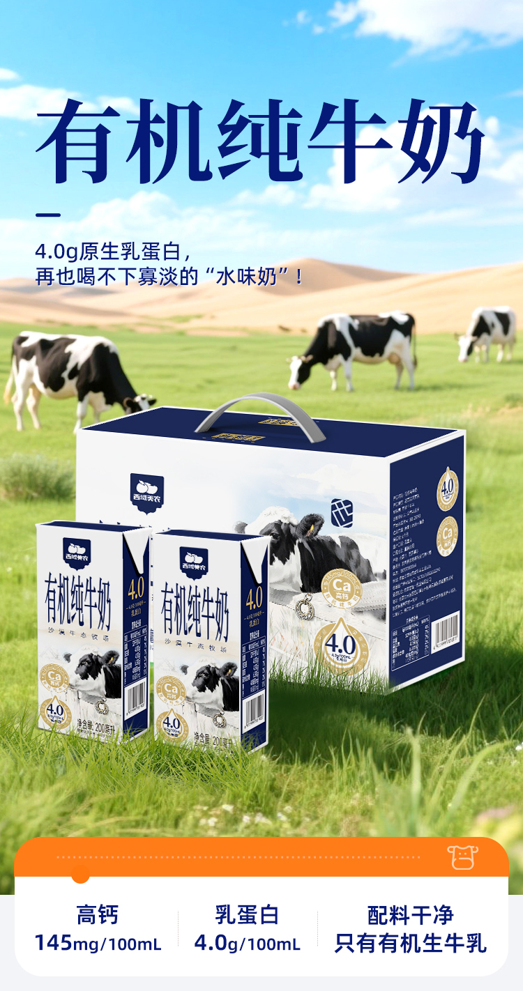 有机纯牛奶 4.0g乳蛋白 145mg/100ml原生高钙 自然回甘不腥腻 200ml*10盒