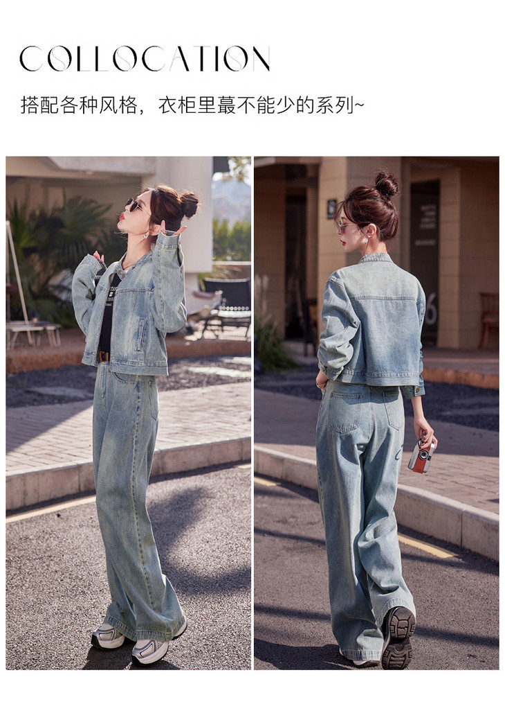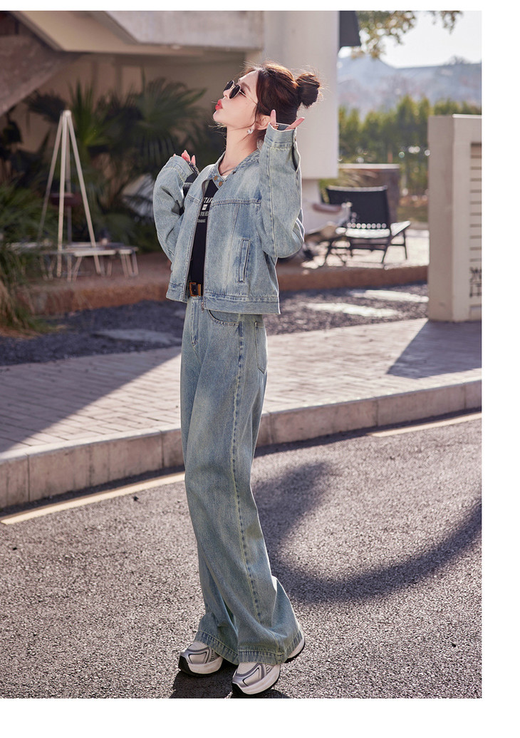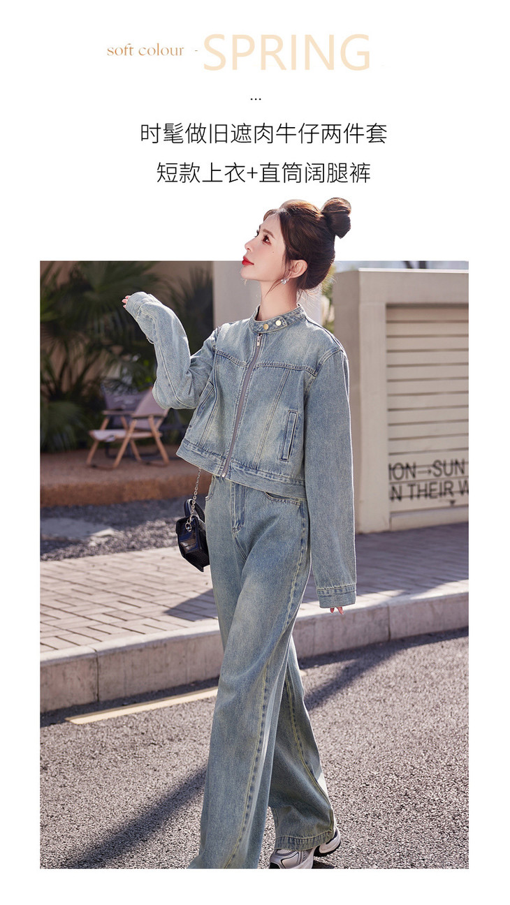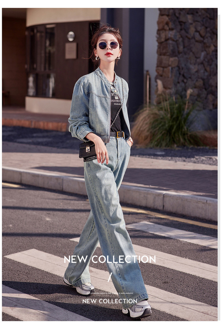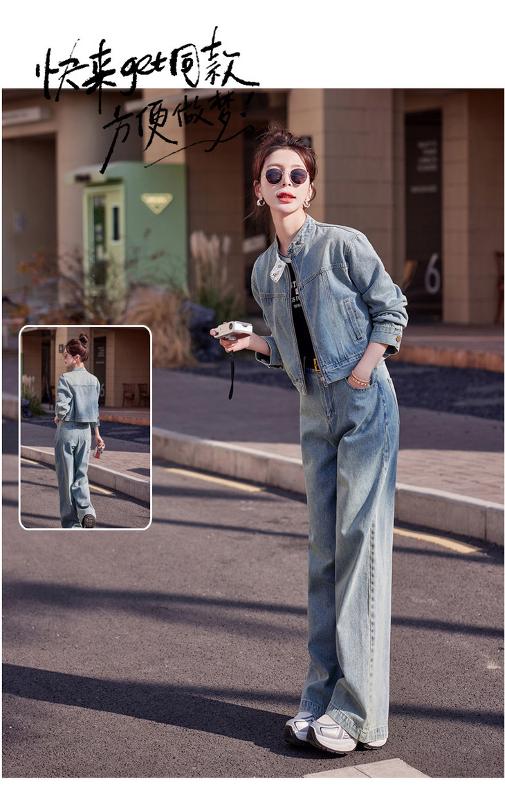 时尚休闲套装2024春新款外套直筒大脚裤牛仔时尚两件套YDYX9203
