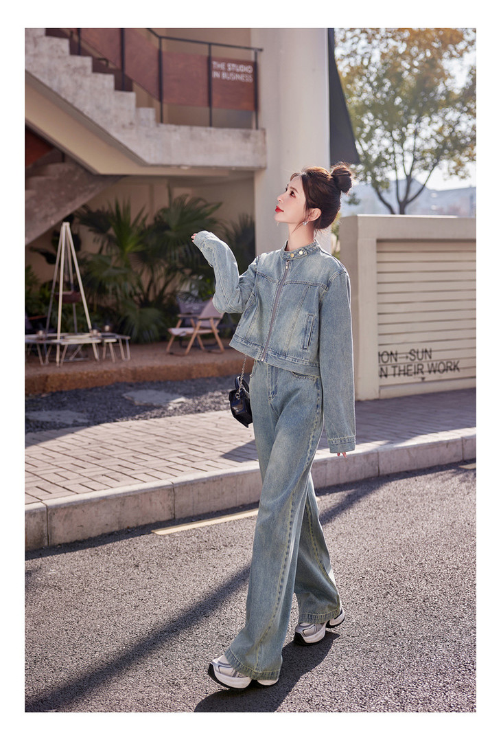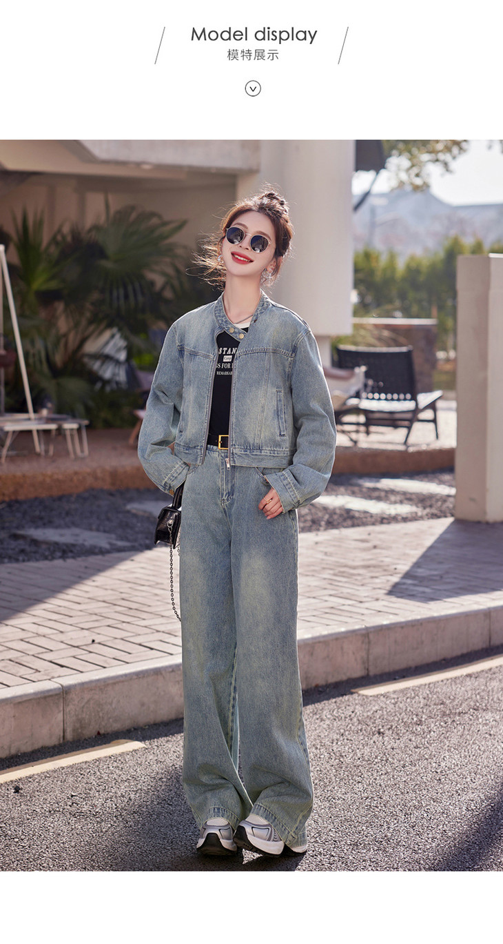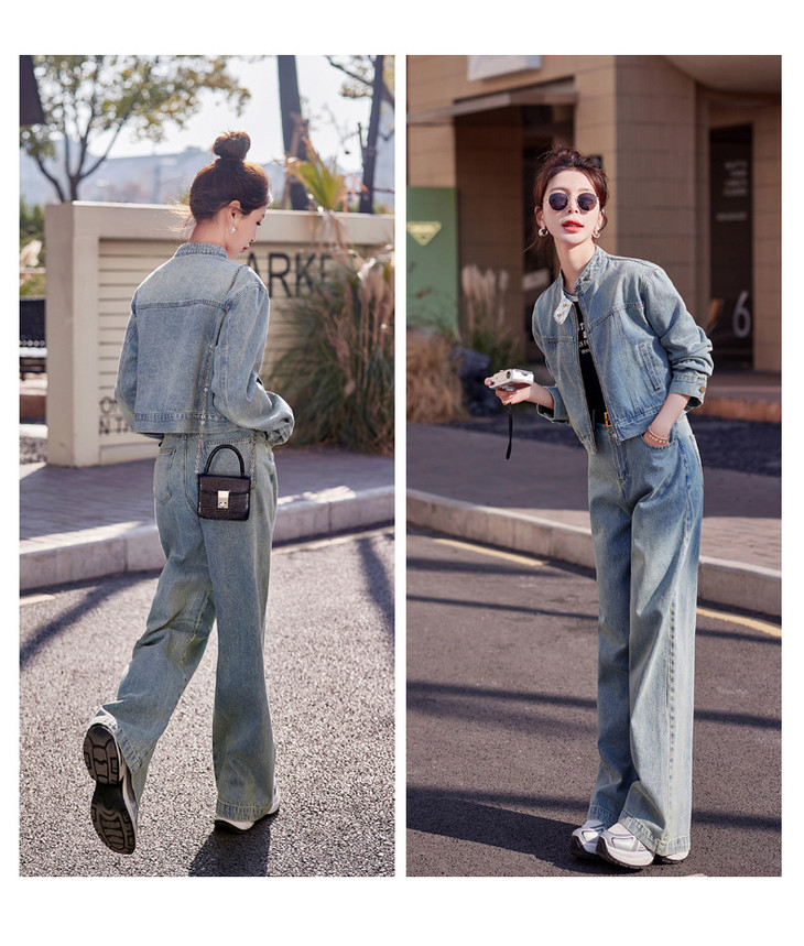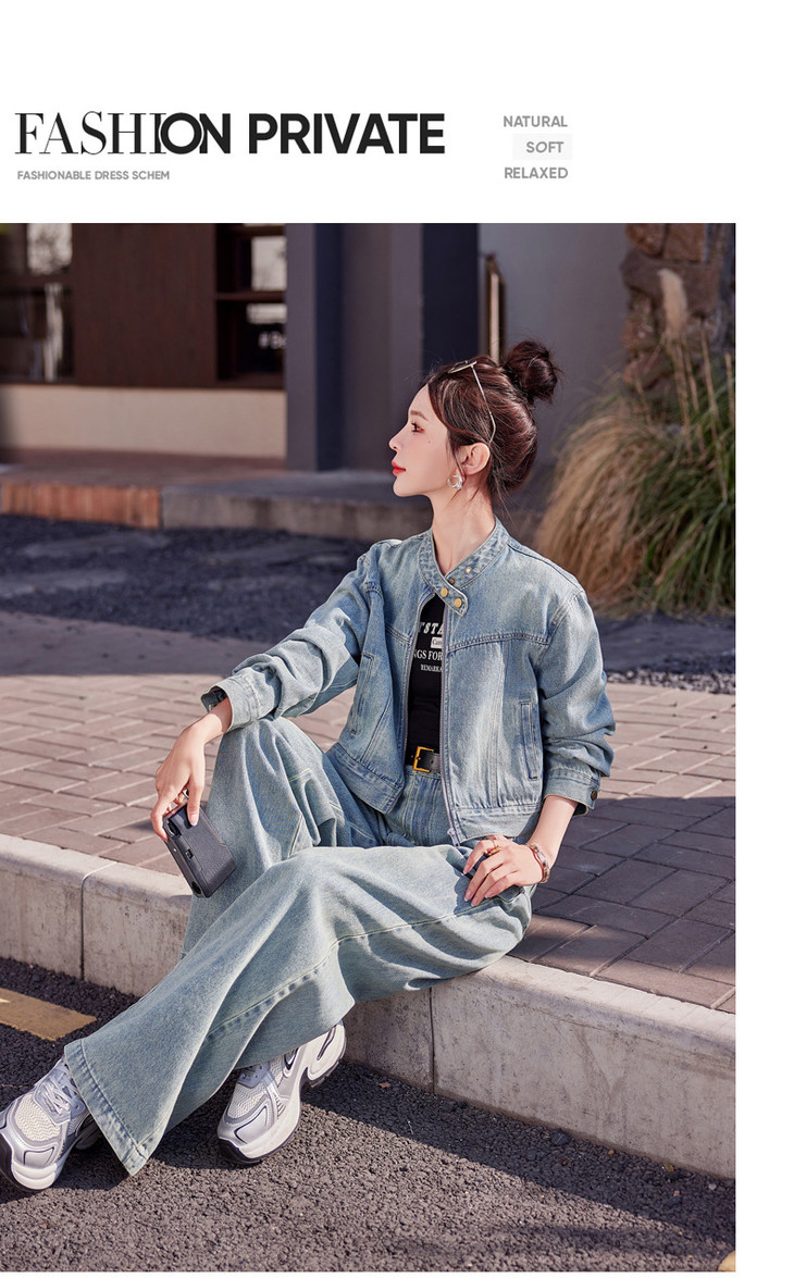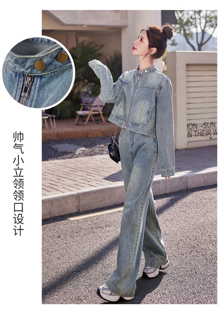 时尚休闲套装2024春新款外套直筒大脚裤牛仔时尚两件套YDYX9203