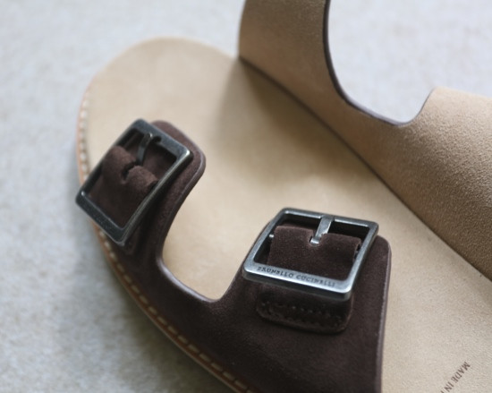 做旧哑光色金属扣 有三扣眼可调 皮带背面和垫脚处 都是同等级的麂皮绒