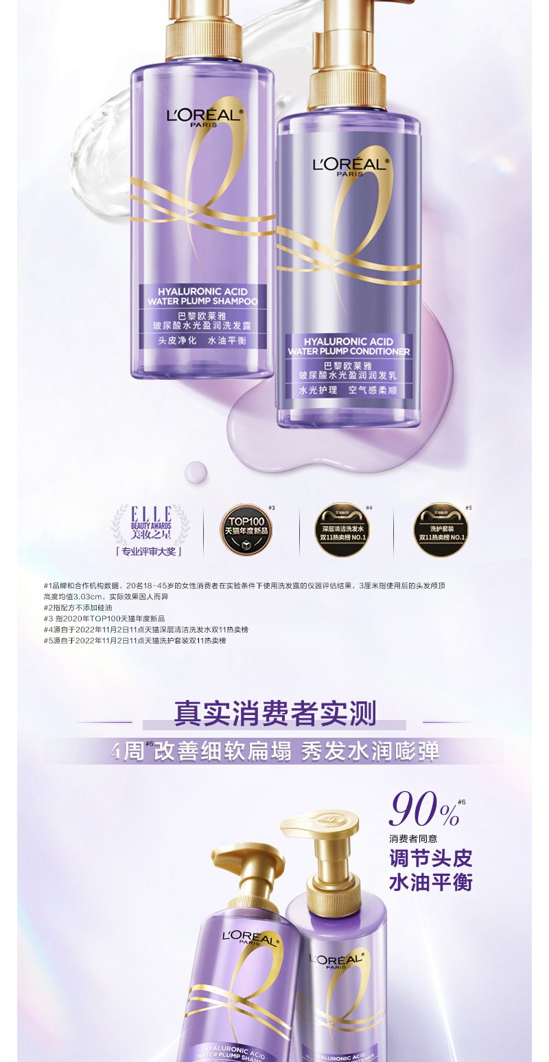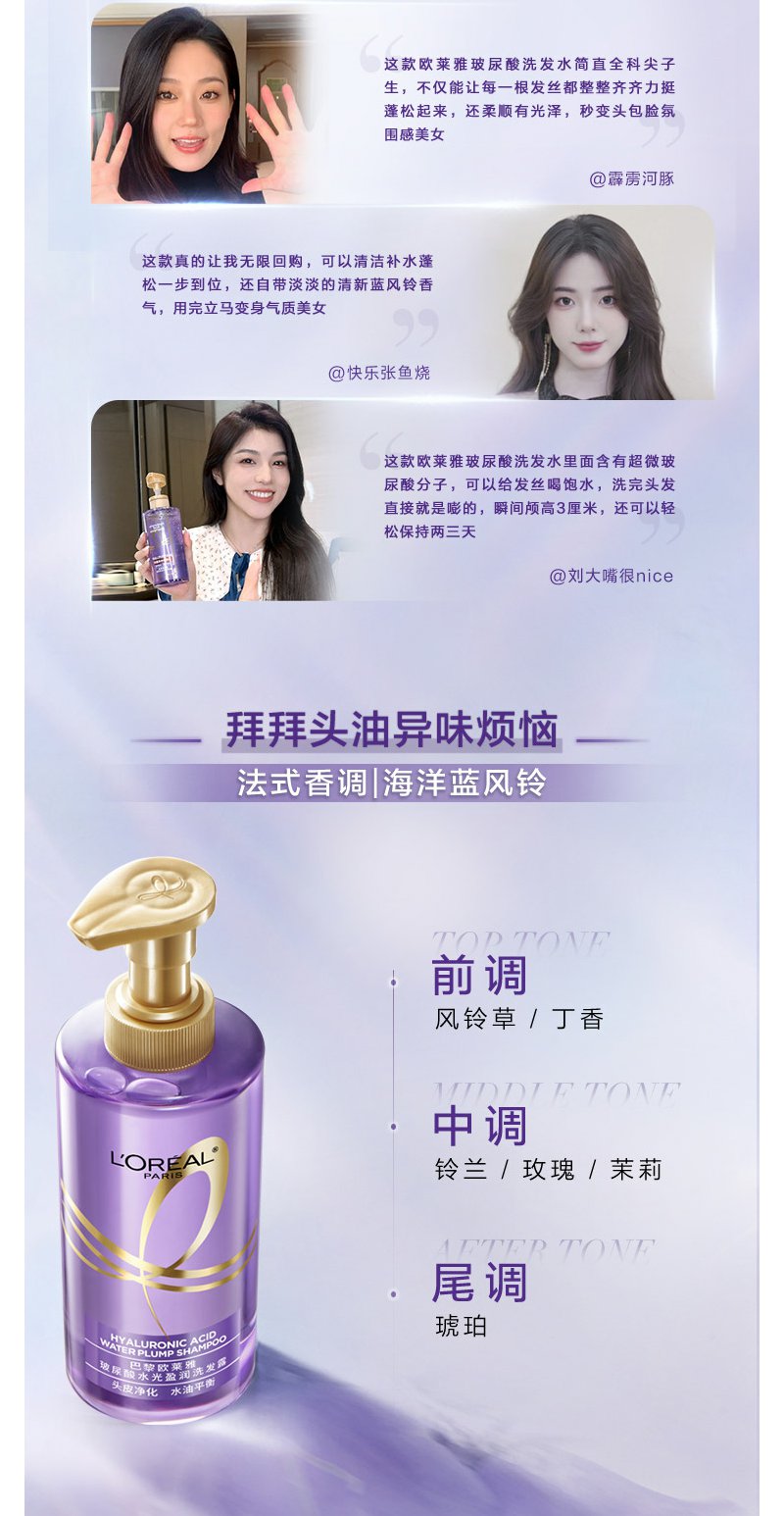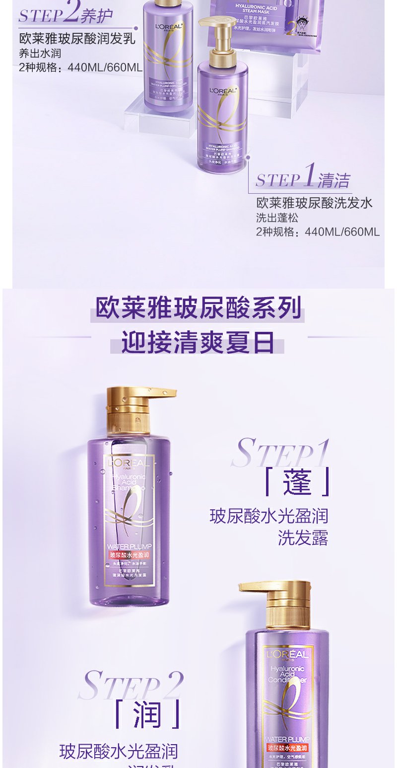 【欧莱雅】B1F欧莱雅玻尿酸水光充盈润润发乳440ml