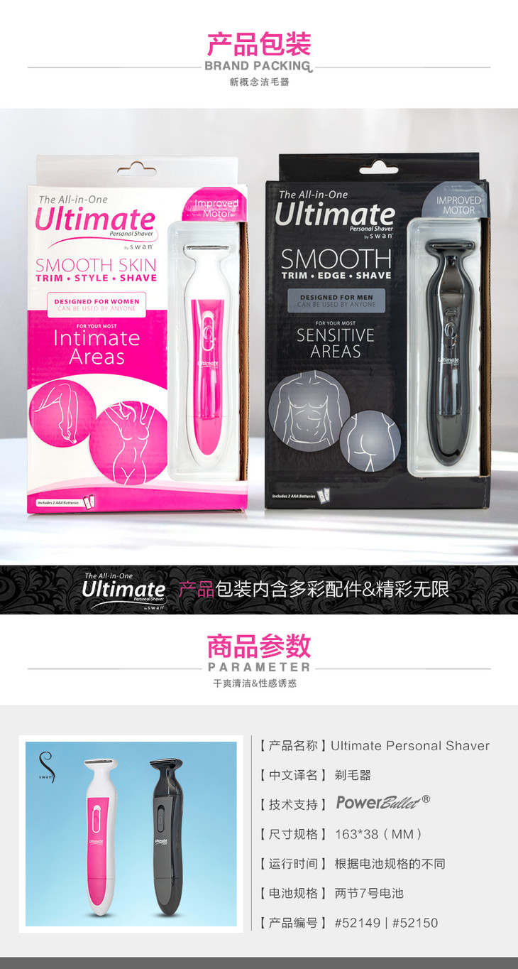 加拿大Swan多功能私密处电动剃毛器男女性情趣用品洁毛器(不含底座)
