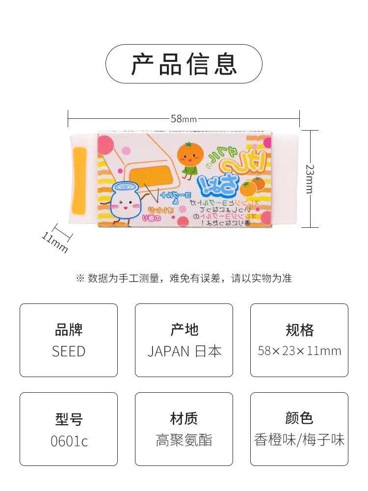 SEED 酸奶夹心香橙葡萄水果香味橡皮学生作业考试绘图橡皮擦0601C