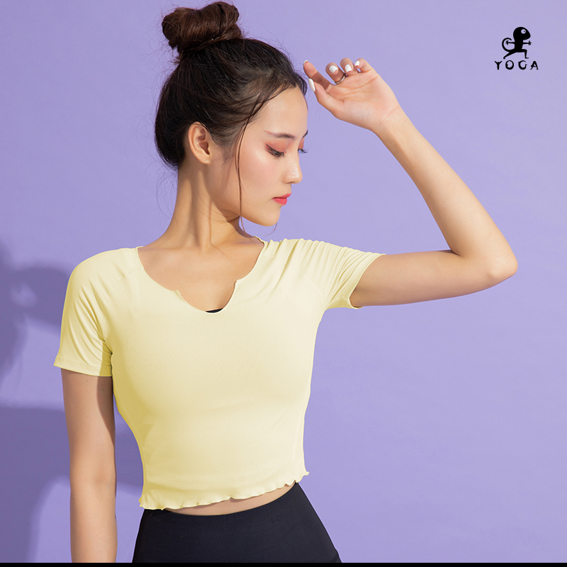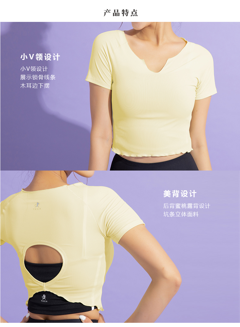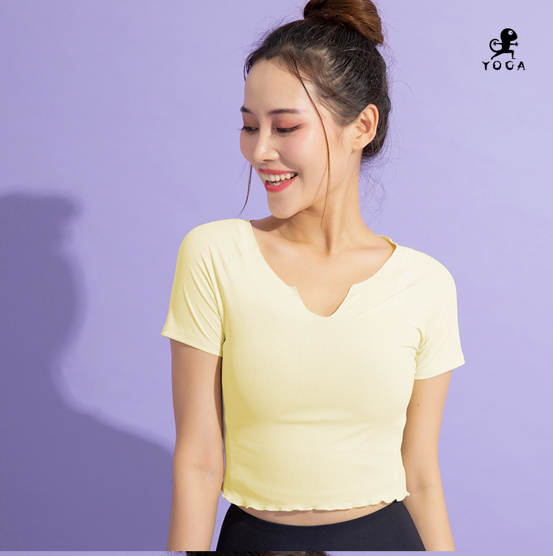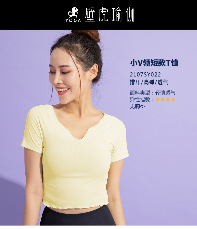 【现货秒发】壁虎瑜伽【2107SY022】小V领短袖T恤(无胸垫)