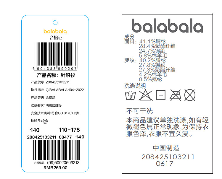 巴拉巴拉balaOne童装儿童毛衫男童女童2025新款冬毛衣绞花针织衫