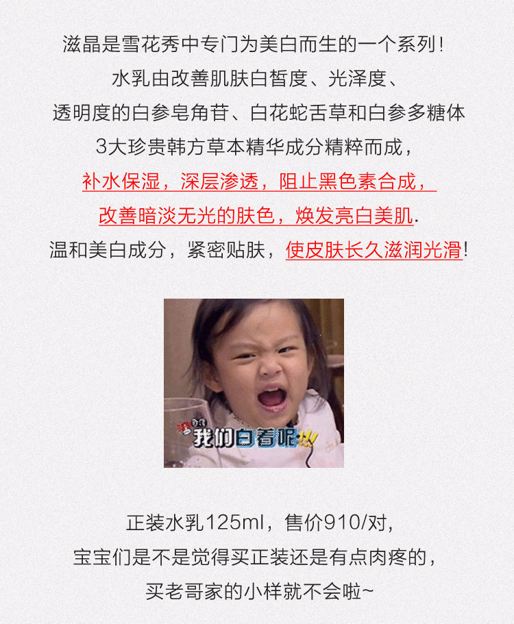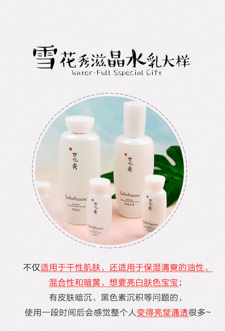 【爆款超低价预售 急单慎拍】韩国雪花秀滋晶美白水乳套装大中样30ml亮白淡斑淡痘印焕白小样