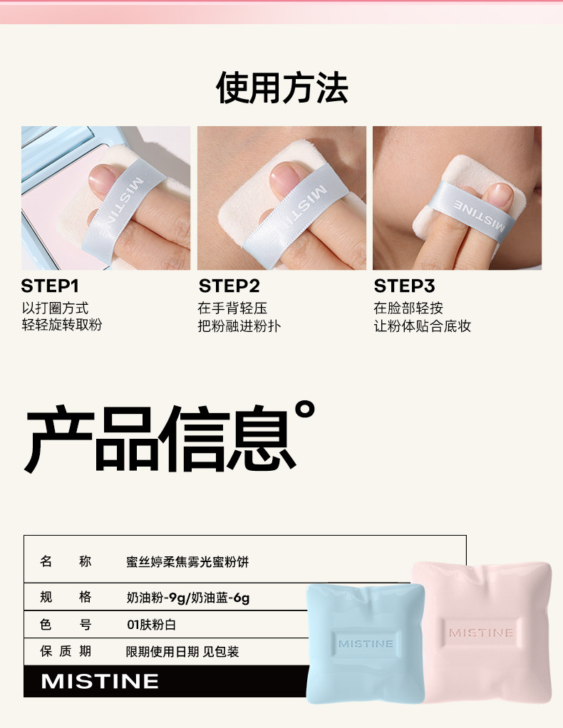 【新品上新】mistine蜜丝婷 嘭嘭粉饼定妆控油持妆提亮遮瑕补妆防水防汗服帖