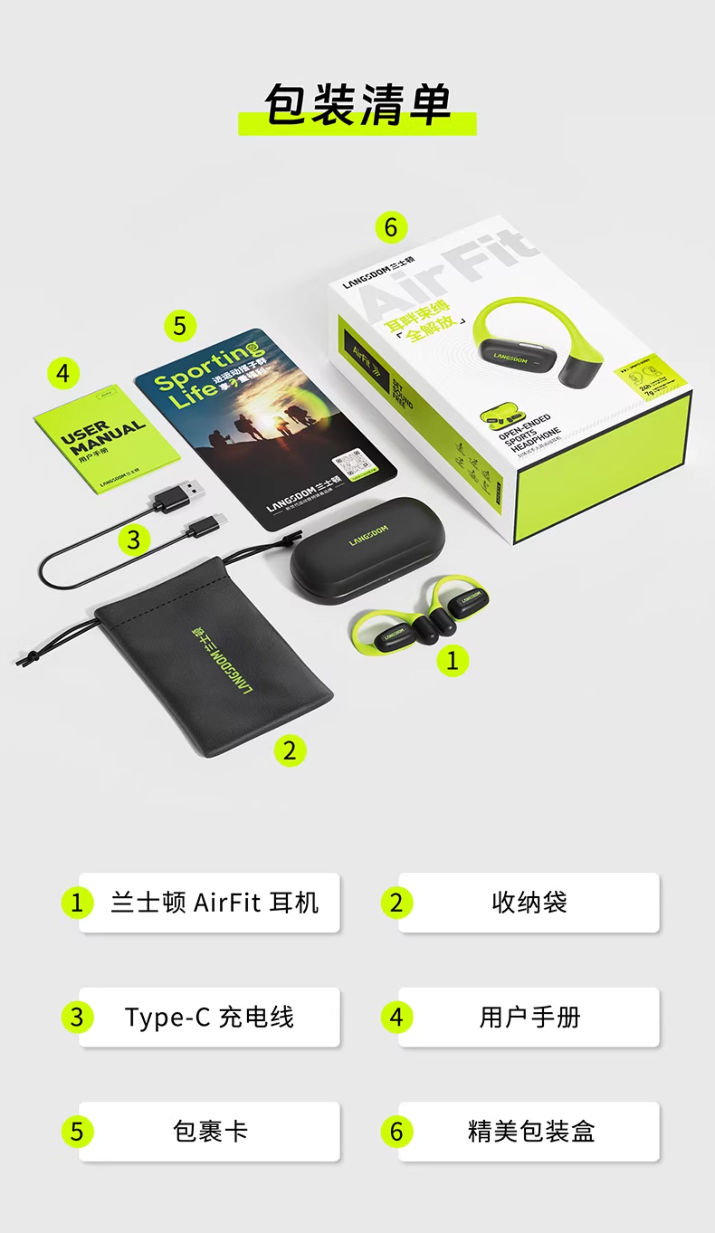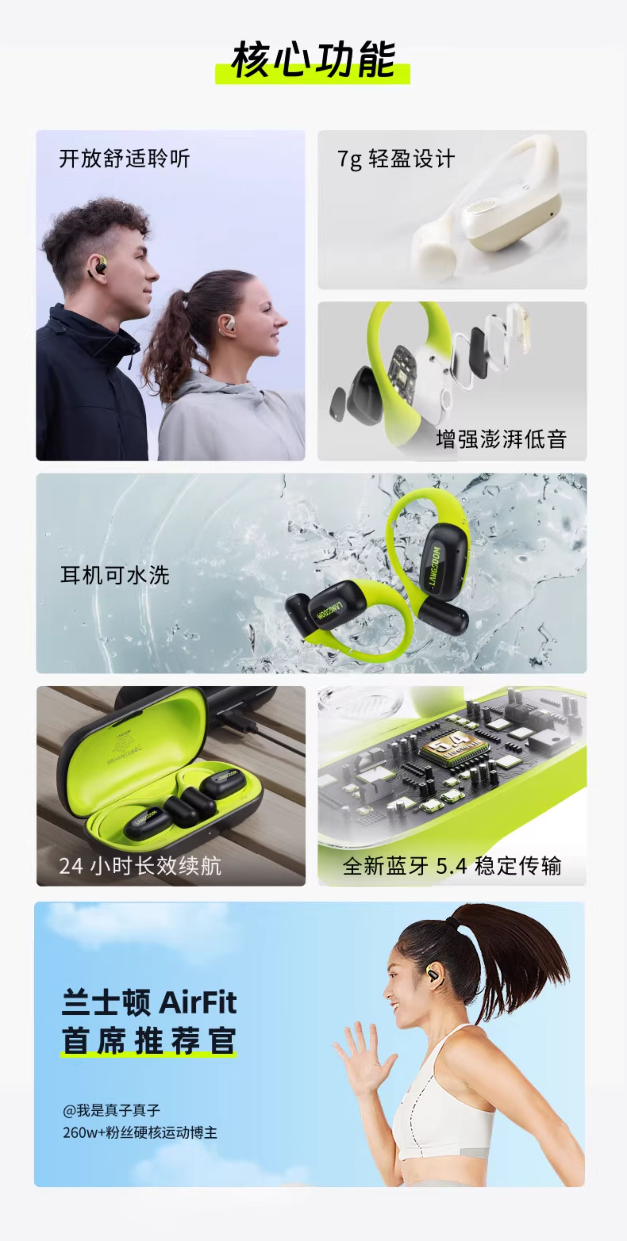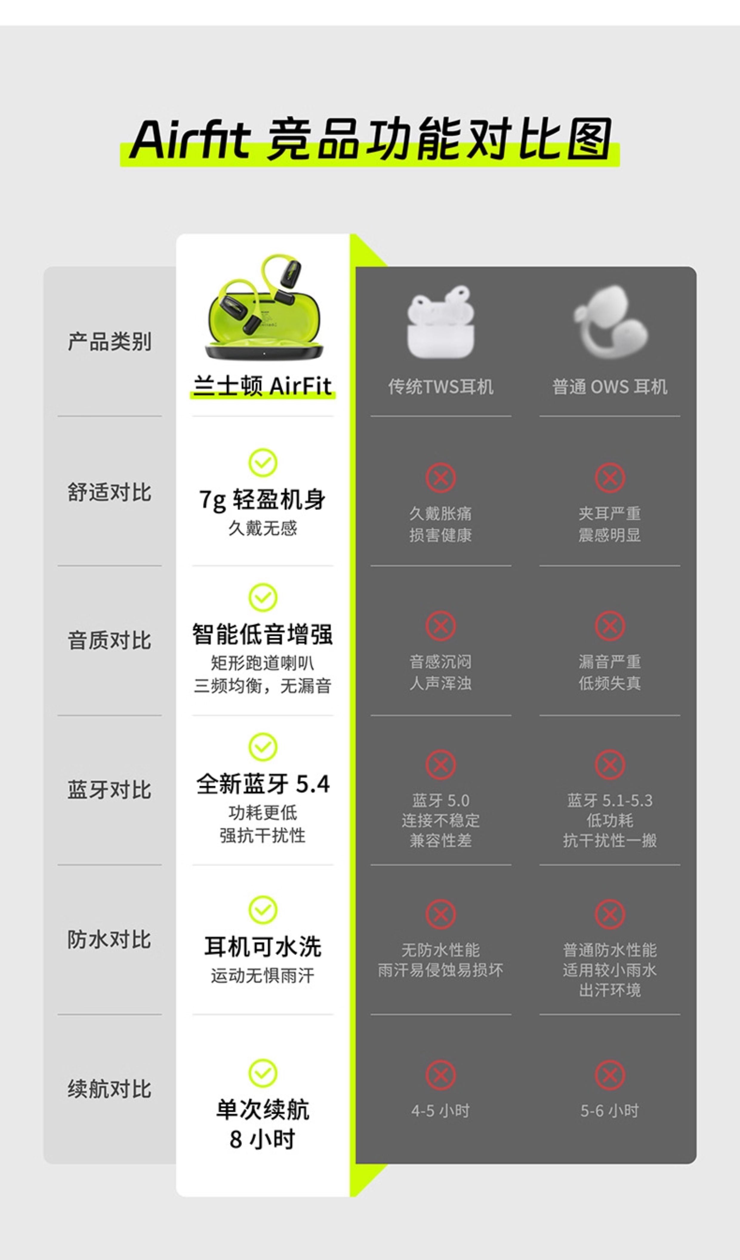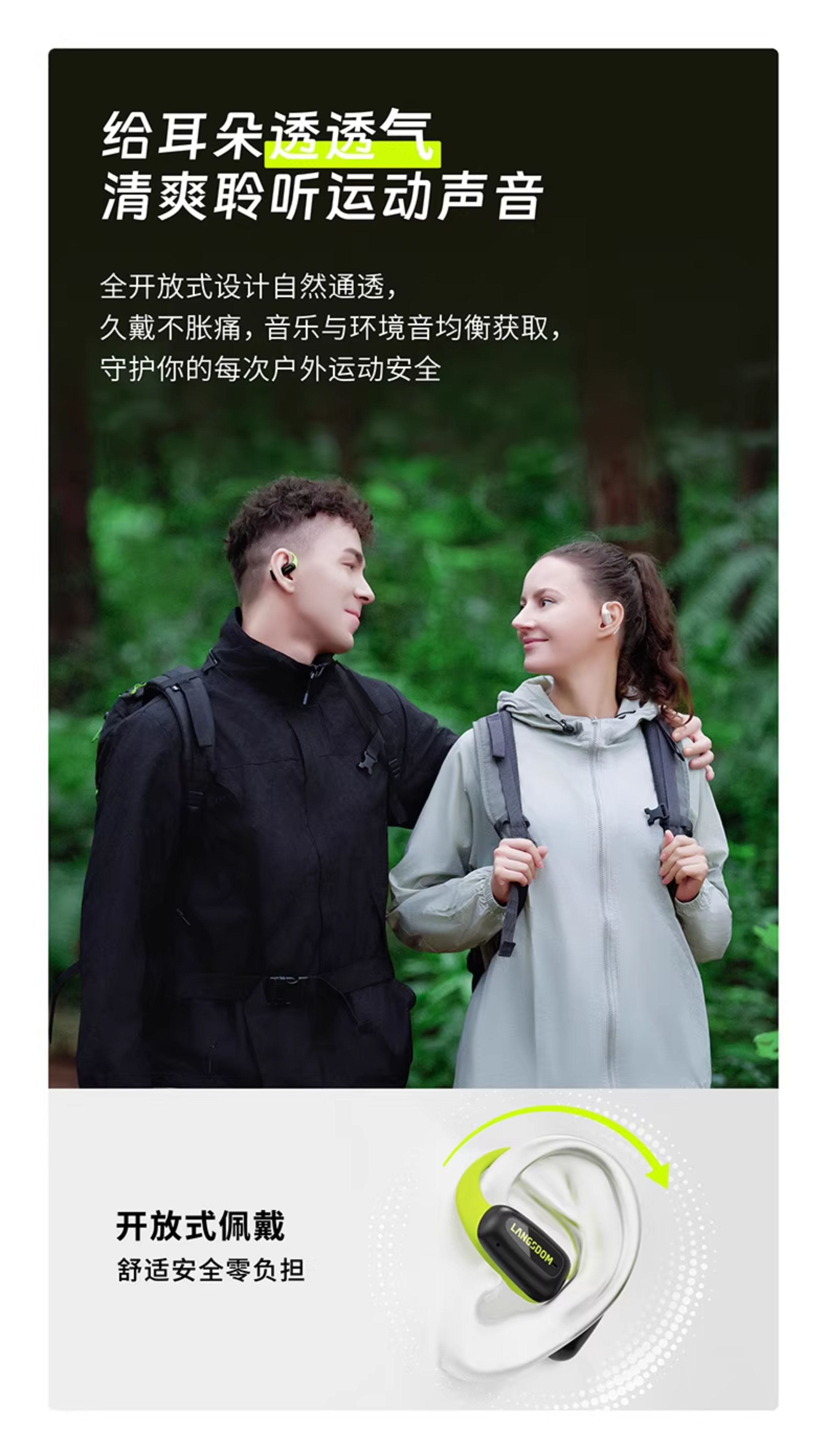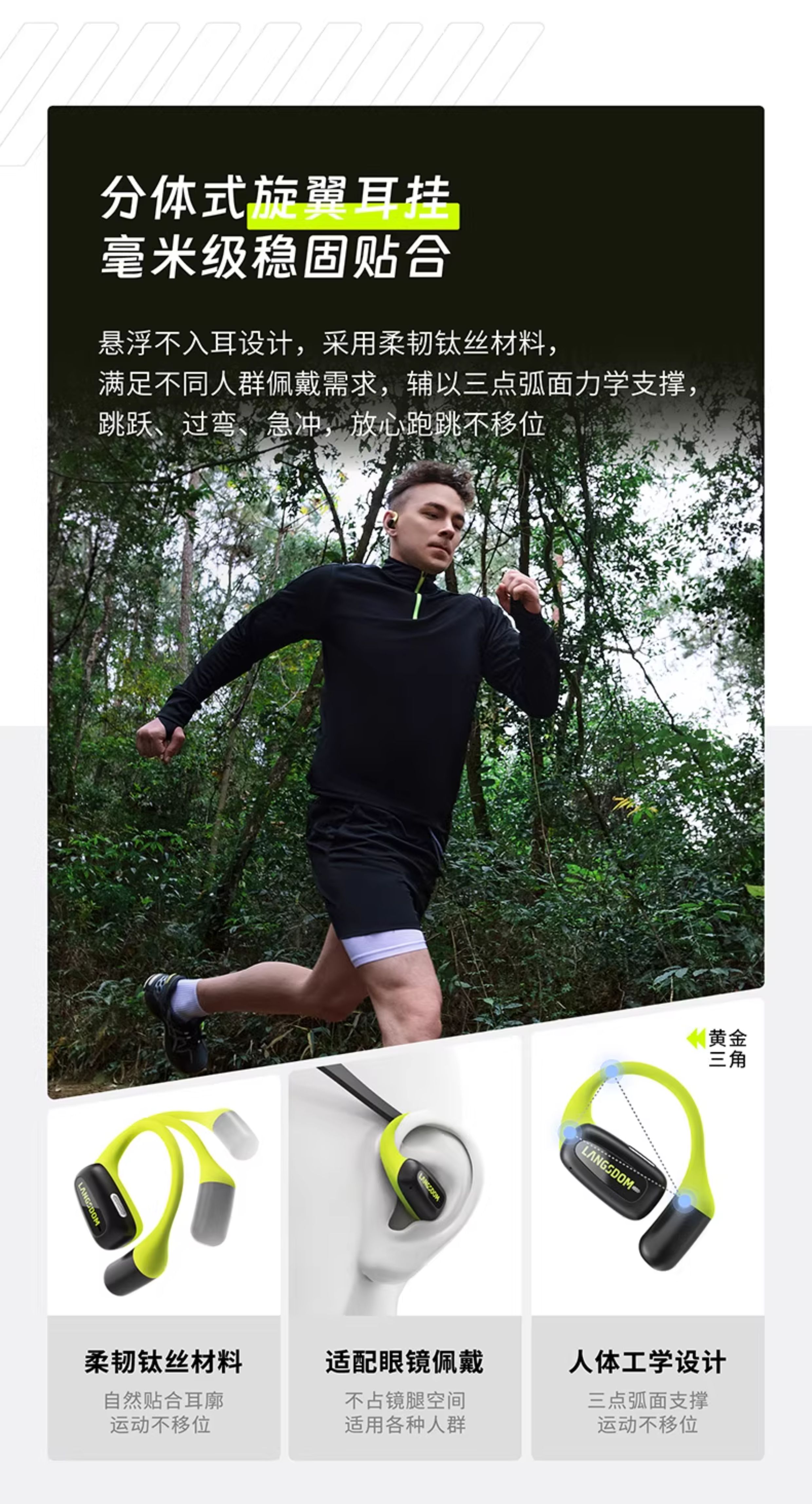 兰士顿TS15 AirFit开放式不入耳运动蓝牙耳机气骨传导耳挂2025新款无线