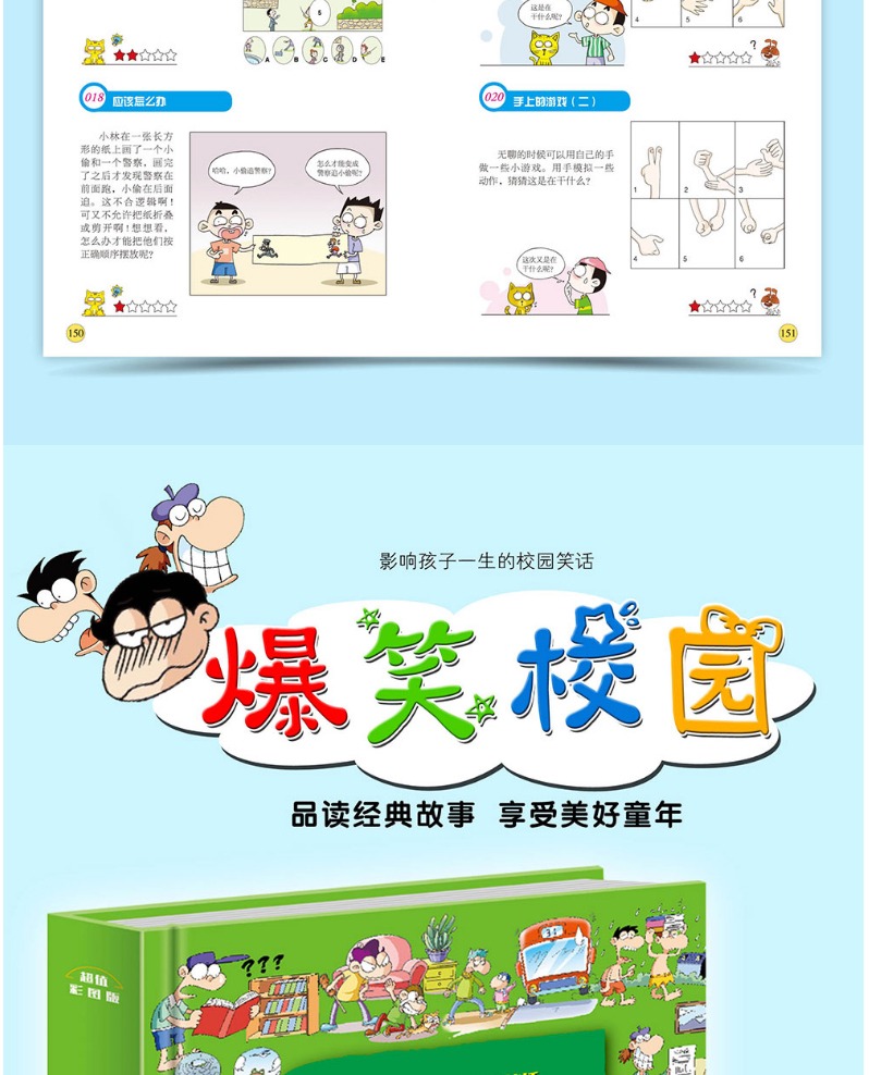 「6-12岁」《爆笑校园》+《漫画头脑风暴》(全套2册)大本 加厚版 提升孩子学习兴趣的好帮手 影响孩子一生的校园笑话