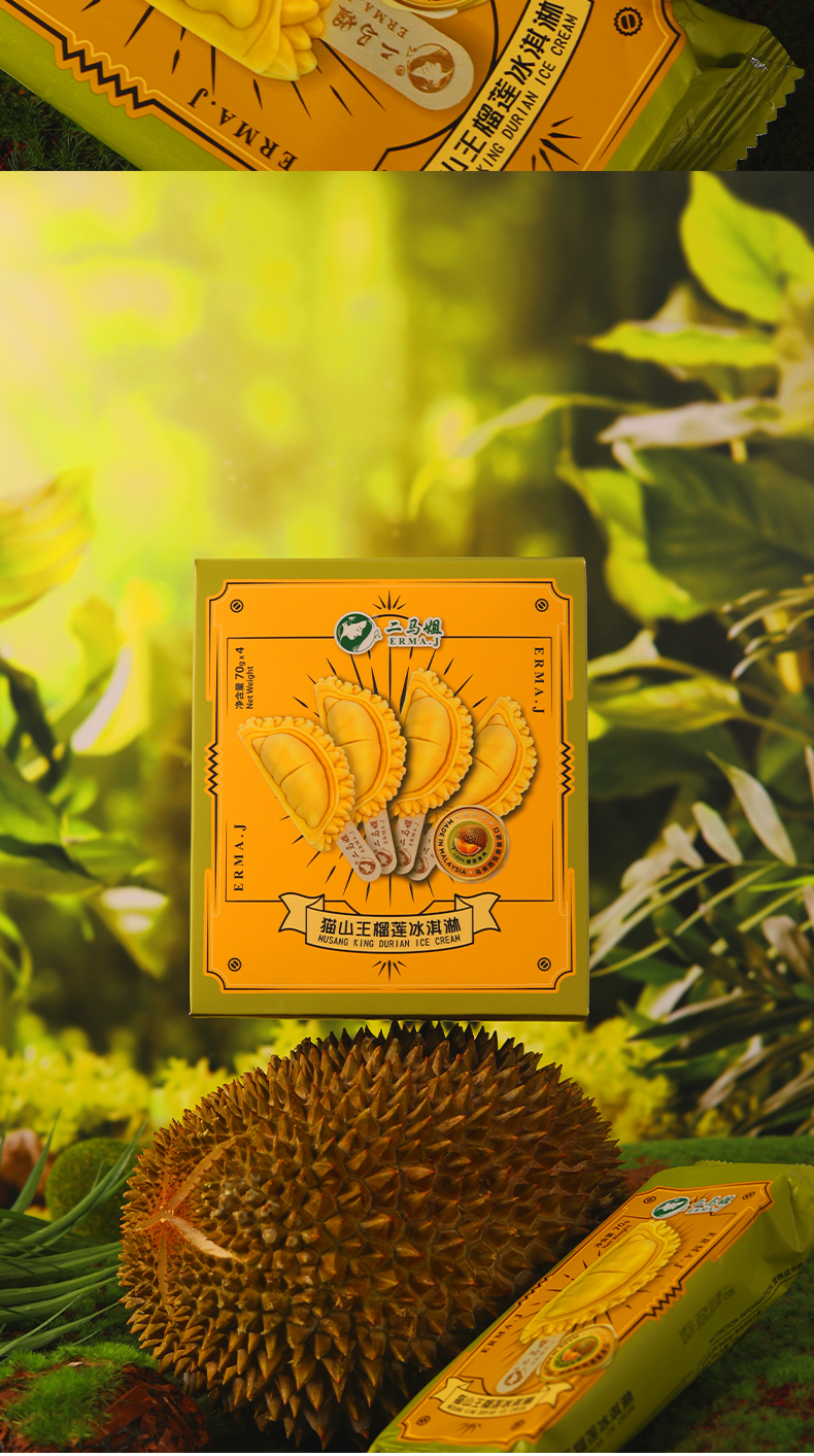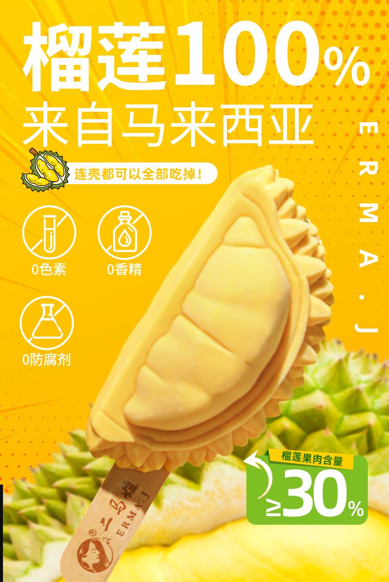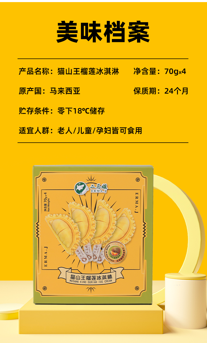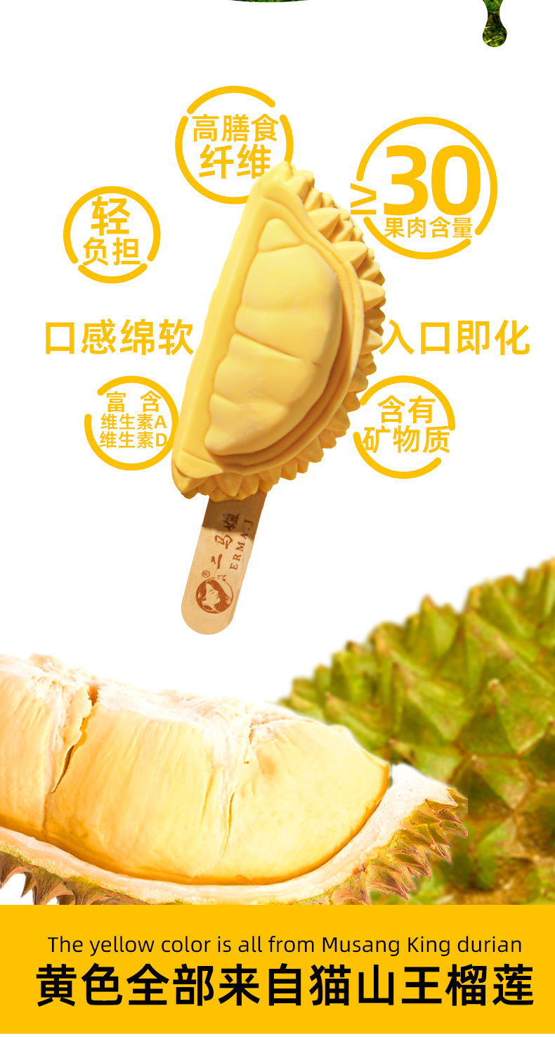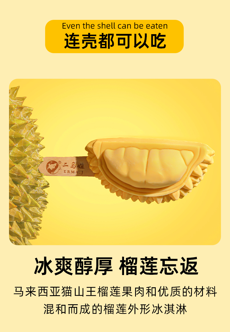 【猫山王榴莲冰淇淋】 精选原料 均衡配方 连壳都可以全部吃掉 口感绵软 入口即化BB