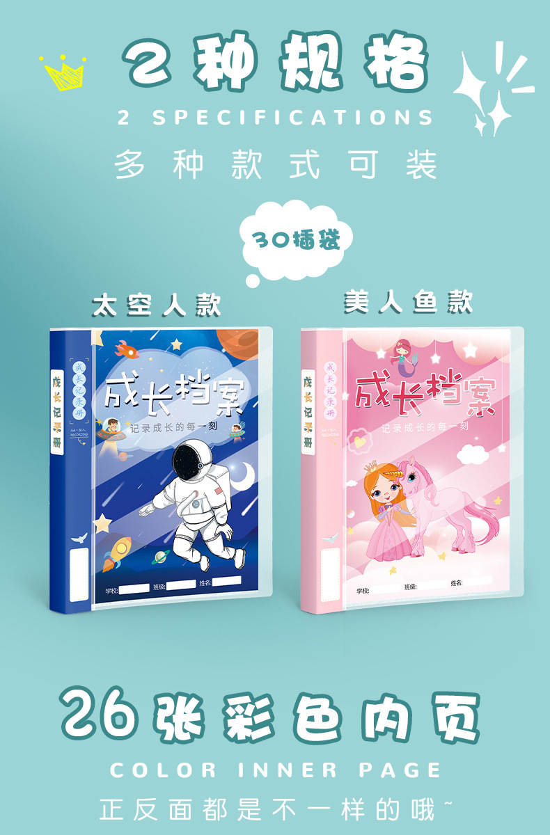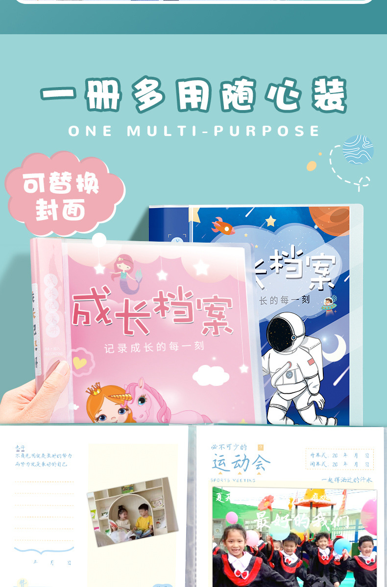儿童成长纪念册小学生活页A4女档案创意相册幼儿园成长幼儿记录册
