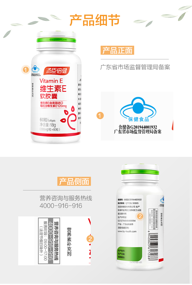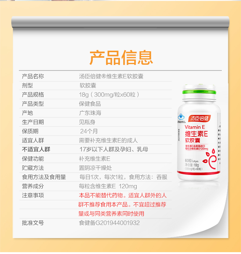 汤臣倍健 维生素E软胶囊礼盒装 (60 粒*2瓶)
