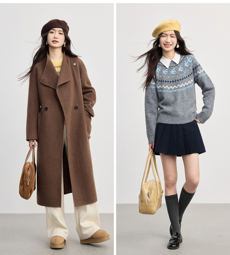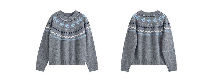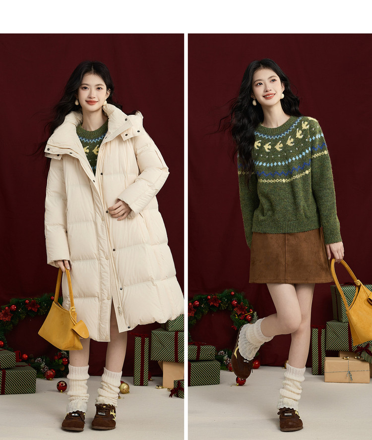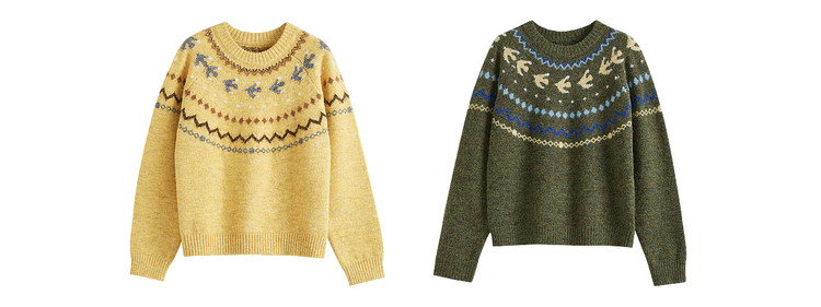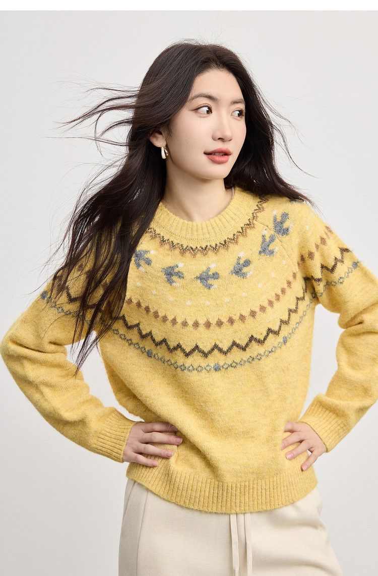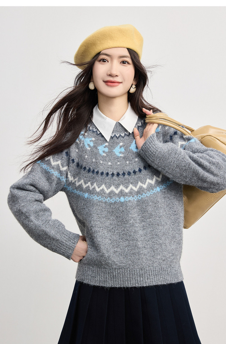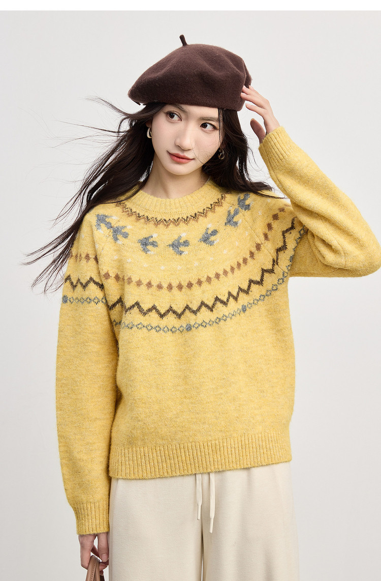 【12/24新品6.5折】熙世界圣诞节穿搭提花毛衣女费尔岛复古绿色针织衫2025秋冬季新款