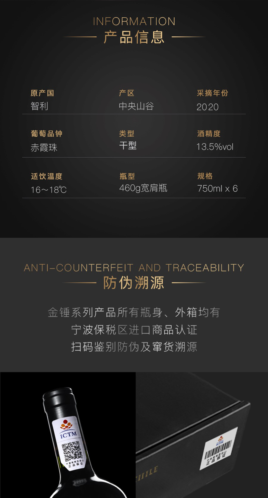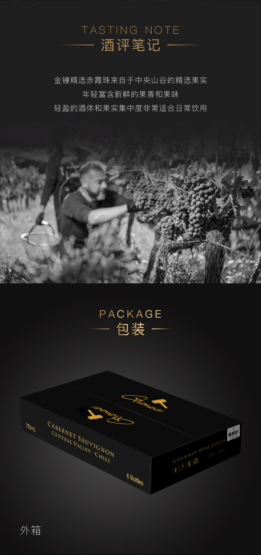 【智利原瓶进口】 金锤精选干红葡萄酒