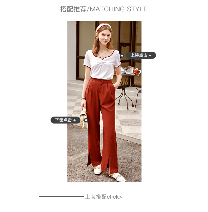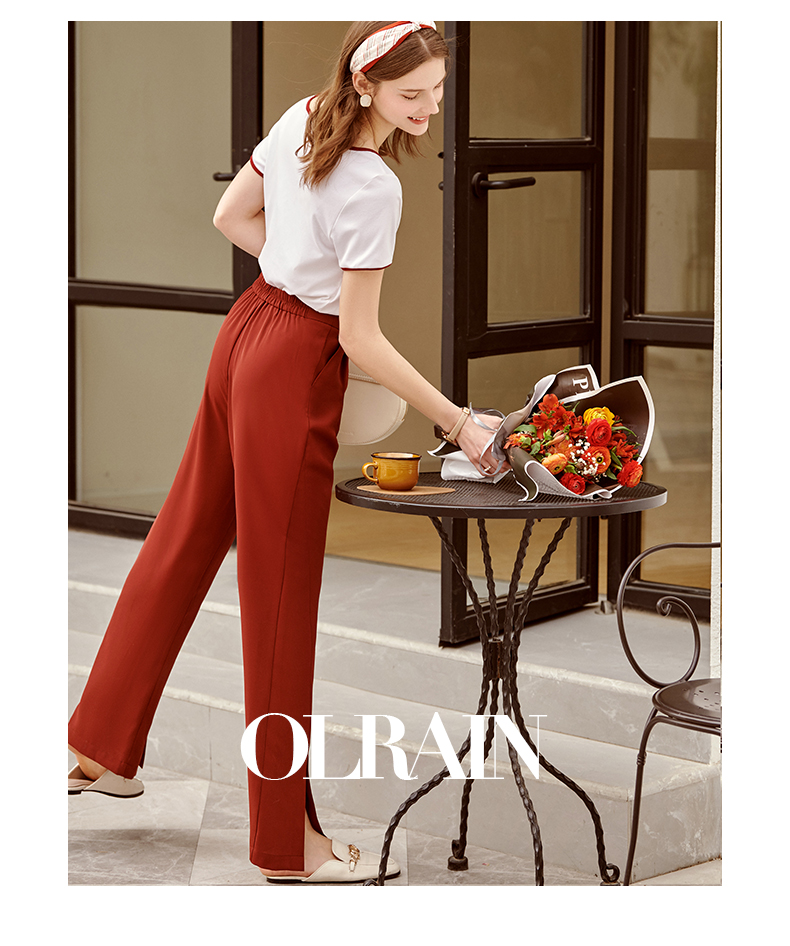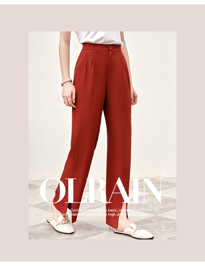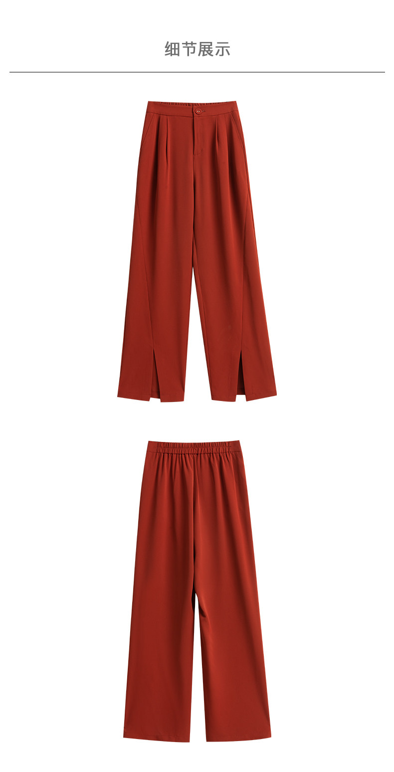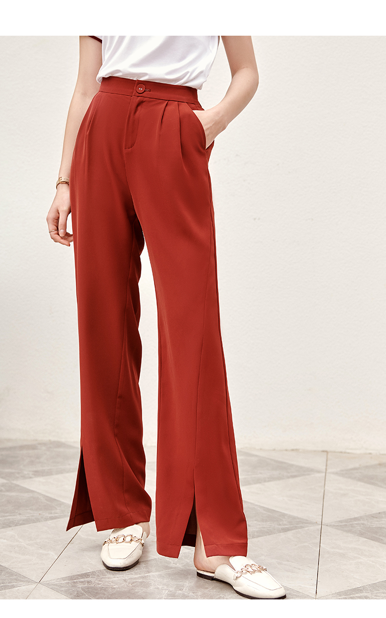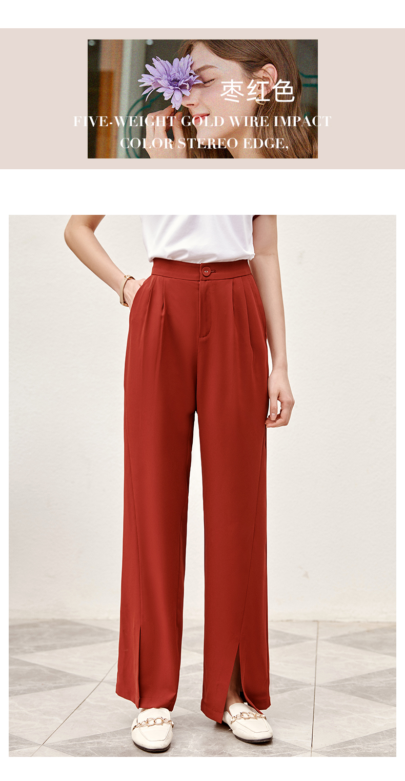 欧芮儿红色休闲裤女夏2021新款高腰显瘦气质优雅时髦开衩拖地长裤