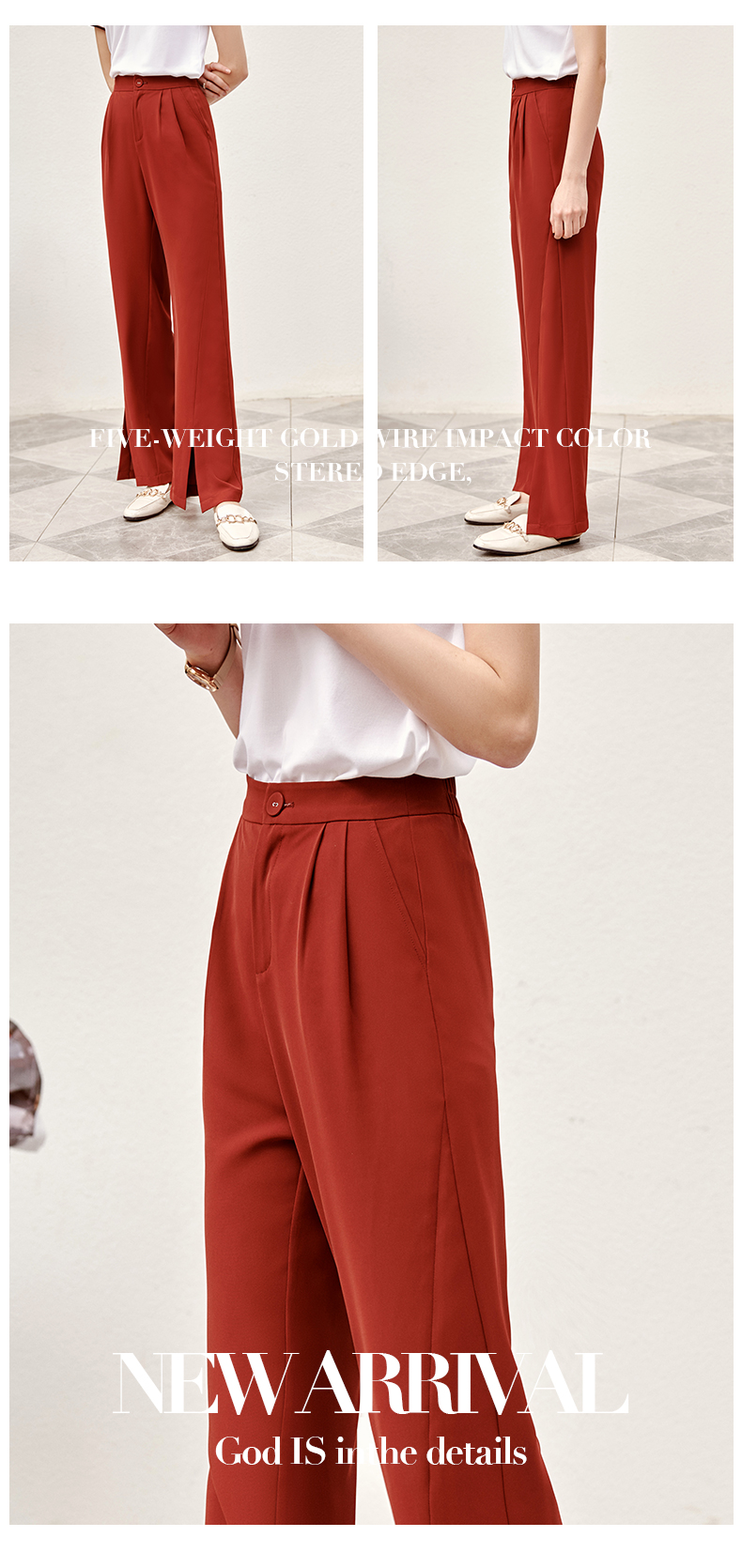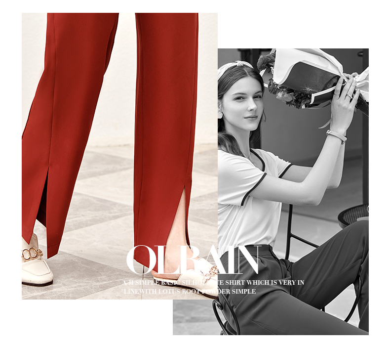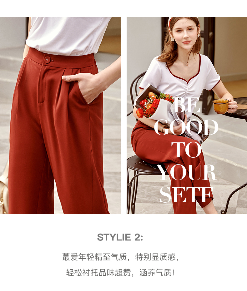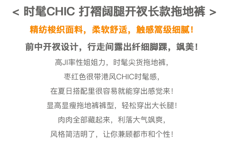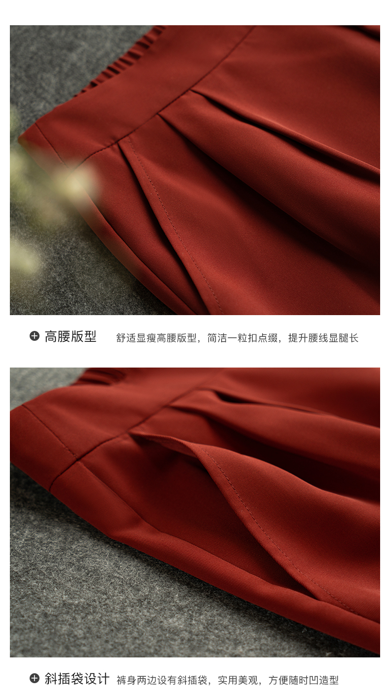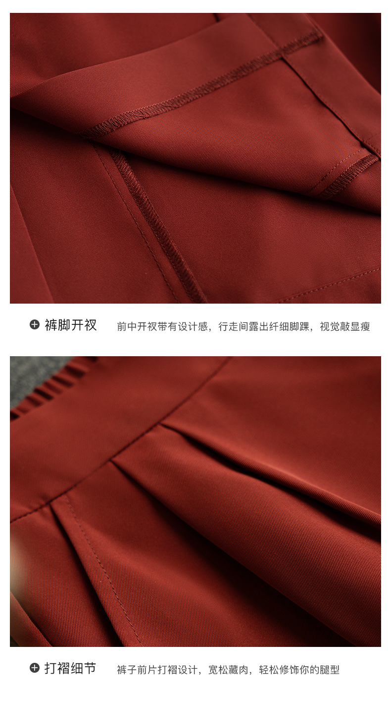 欧芮儿红色休闲裤女夏2021新款高腰显瘦气质优雅时髦开衩拖地长裤