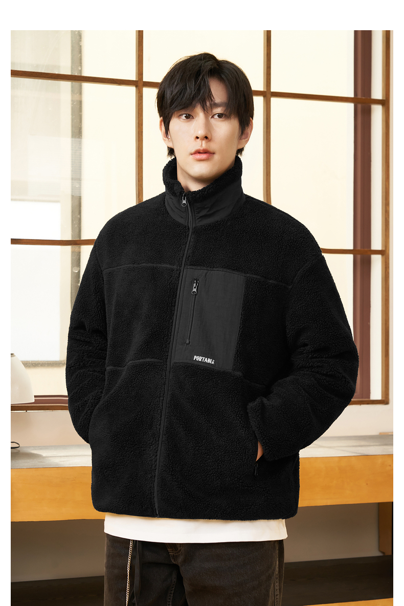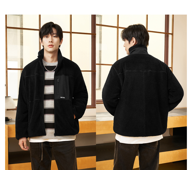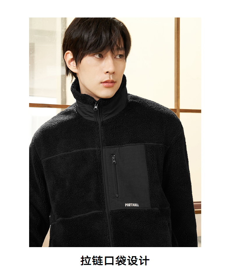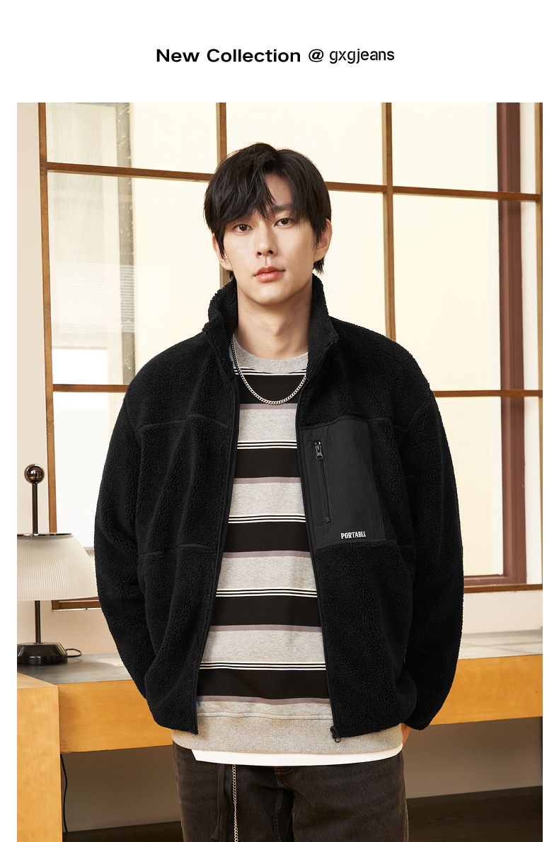 gxg.jeans男装冬季夹克黑色拉链口袋毛绒夹克JEX12100854