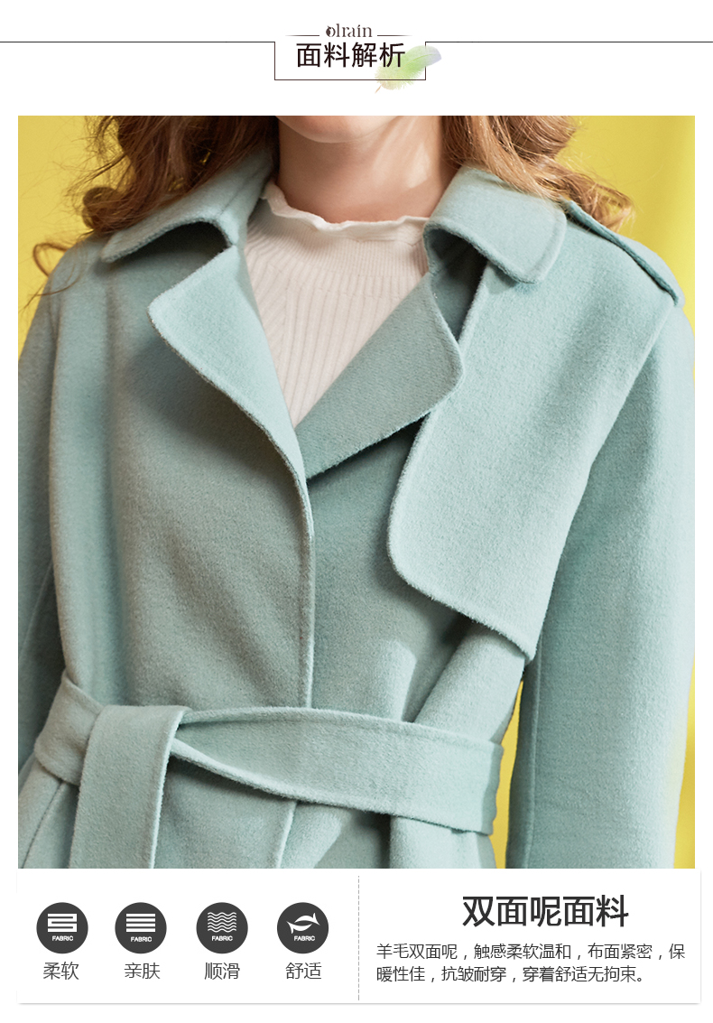 欧芮儿欧芮儿2017冬新款收腰双面呢毛呢外套女中长款