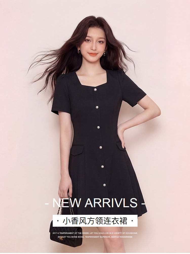 奢姿大码女装2026夏季气质方领轻奢时尚连衣裙胖妹妹小香风裙子3262803826
