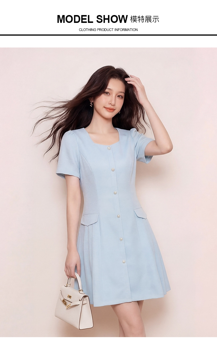奢姿大码女装2026夏季百褶设计牛仔方领连衣裙胖妹妹休闲时尚裙子3262803839