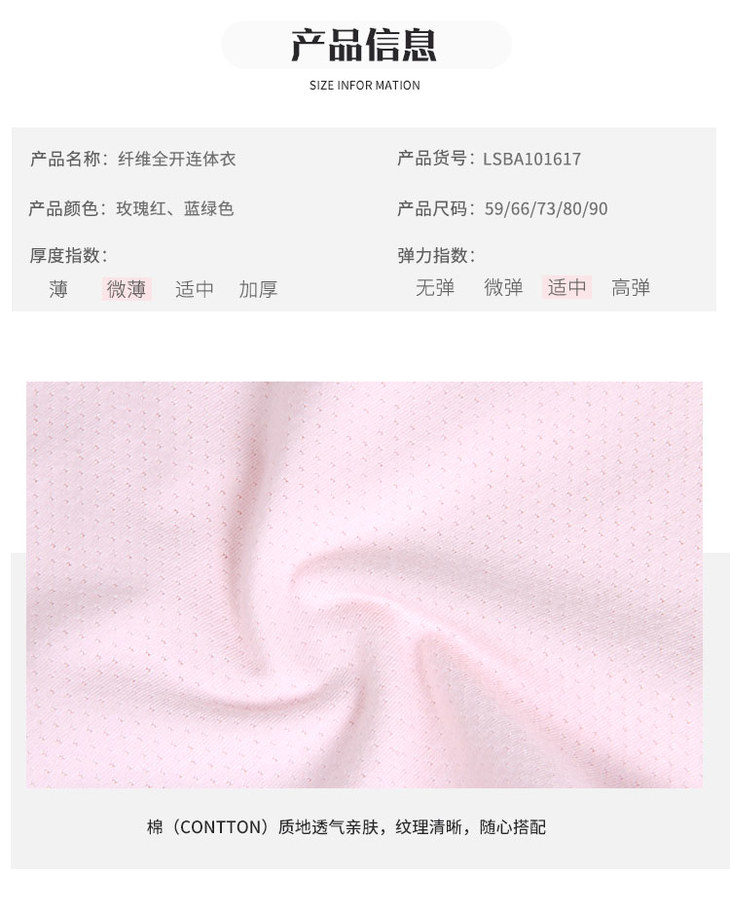 拉比-内衣类(夏)C9纤维全开连体衣玫瑰红
