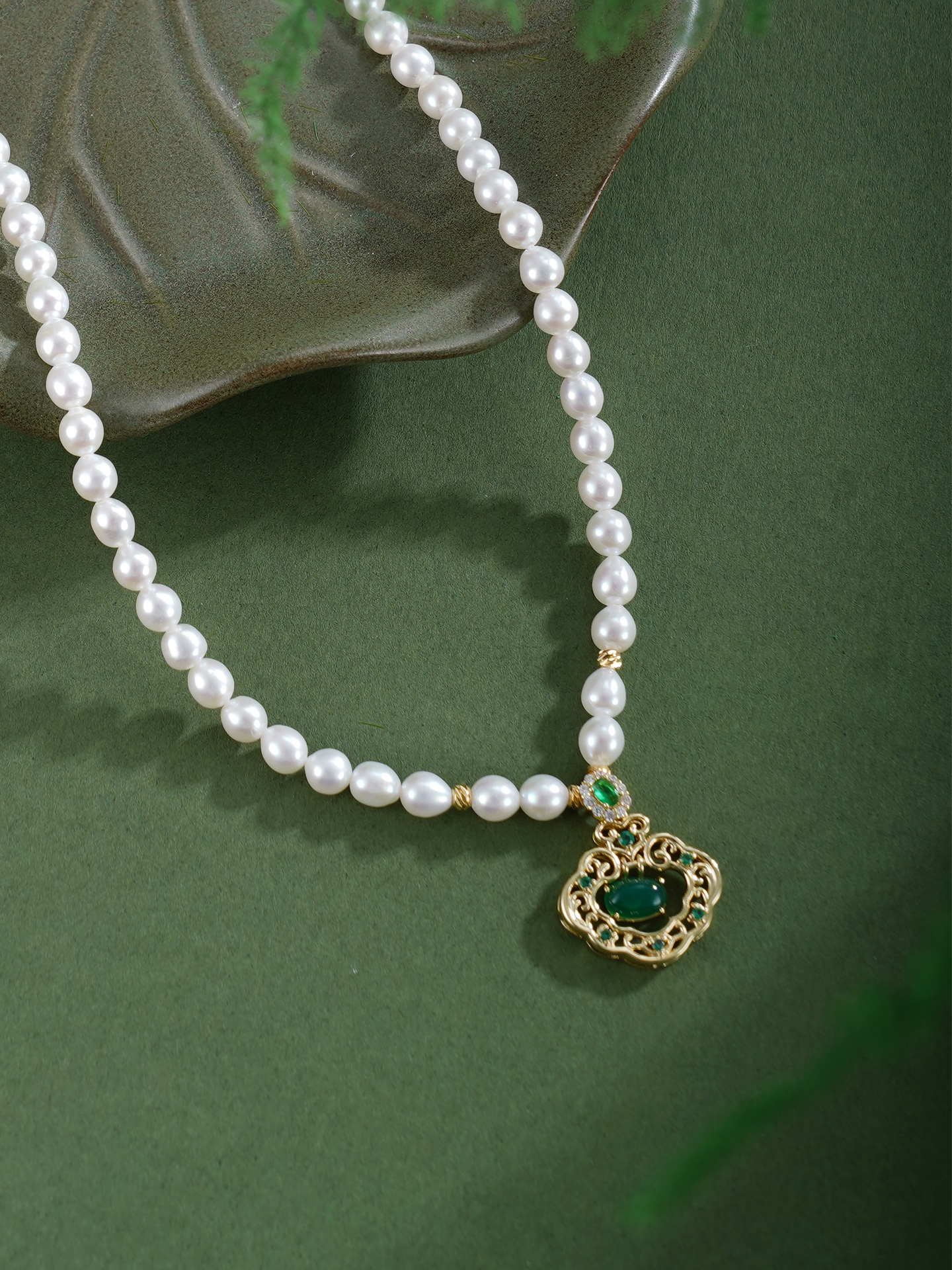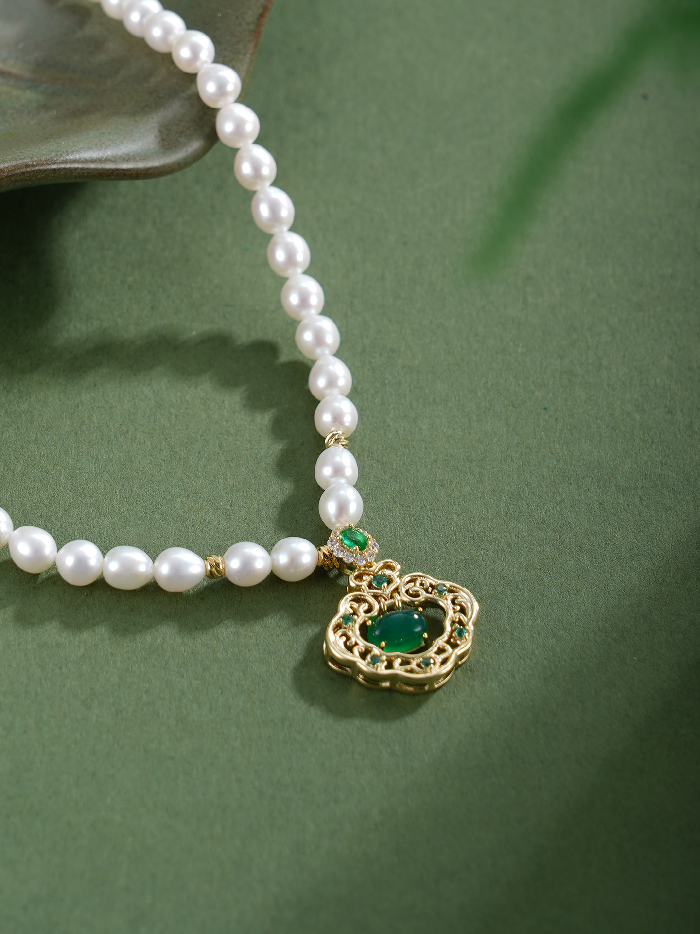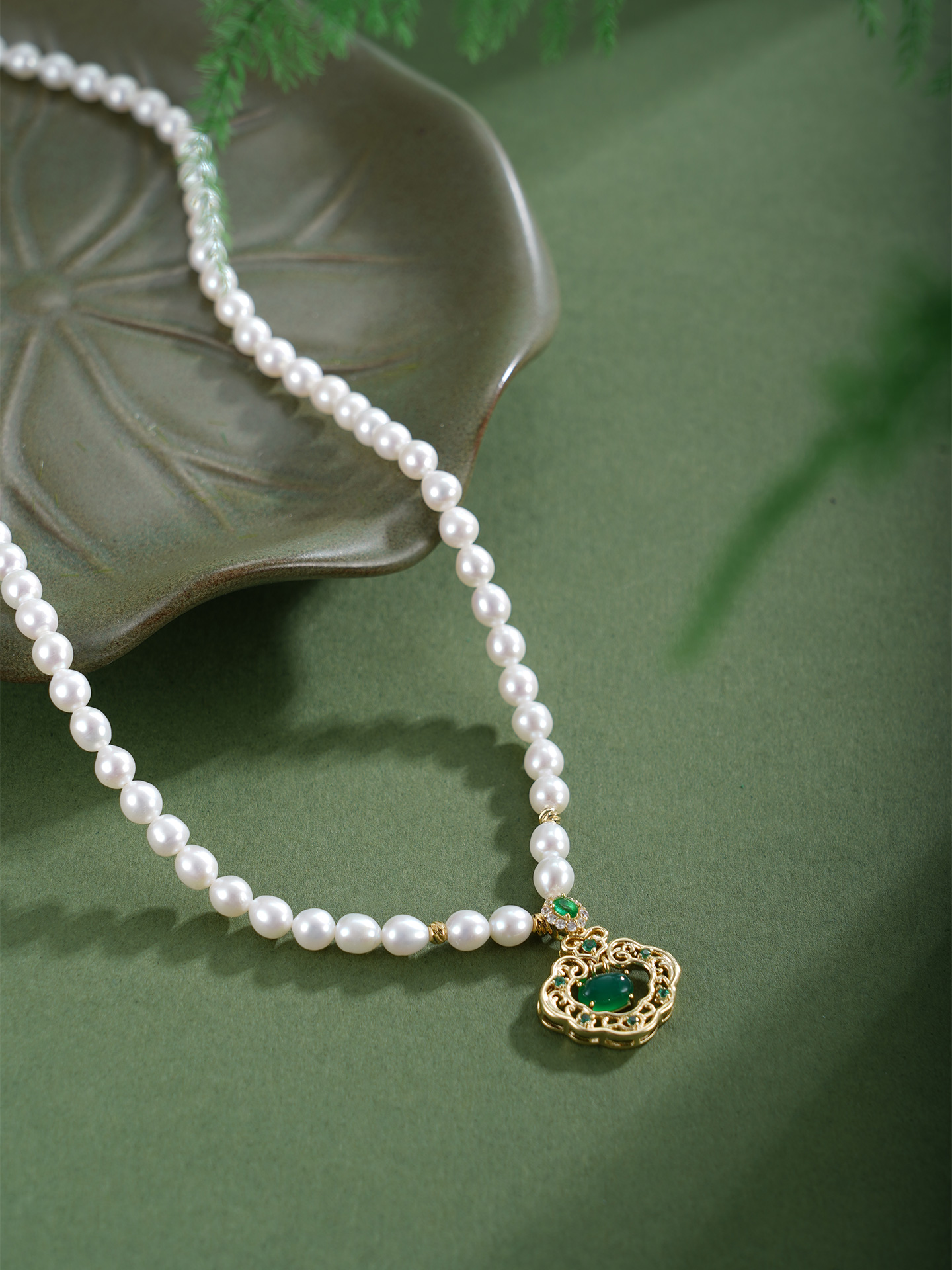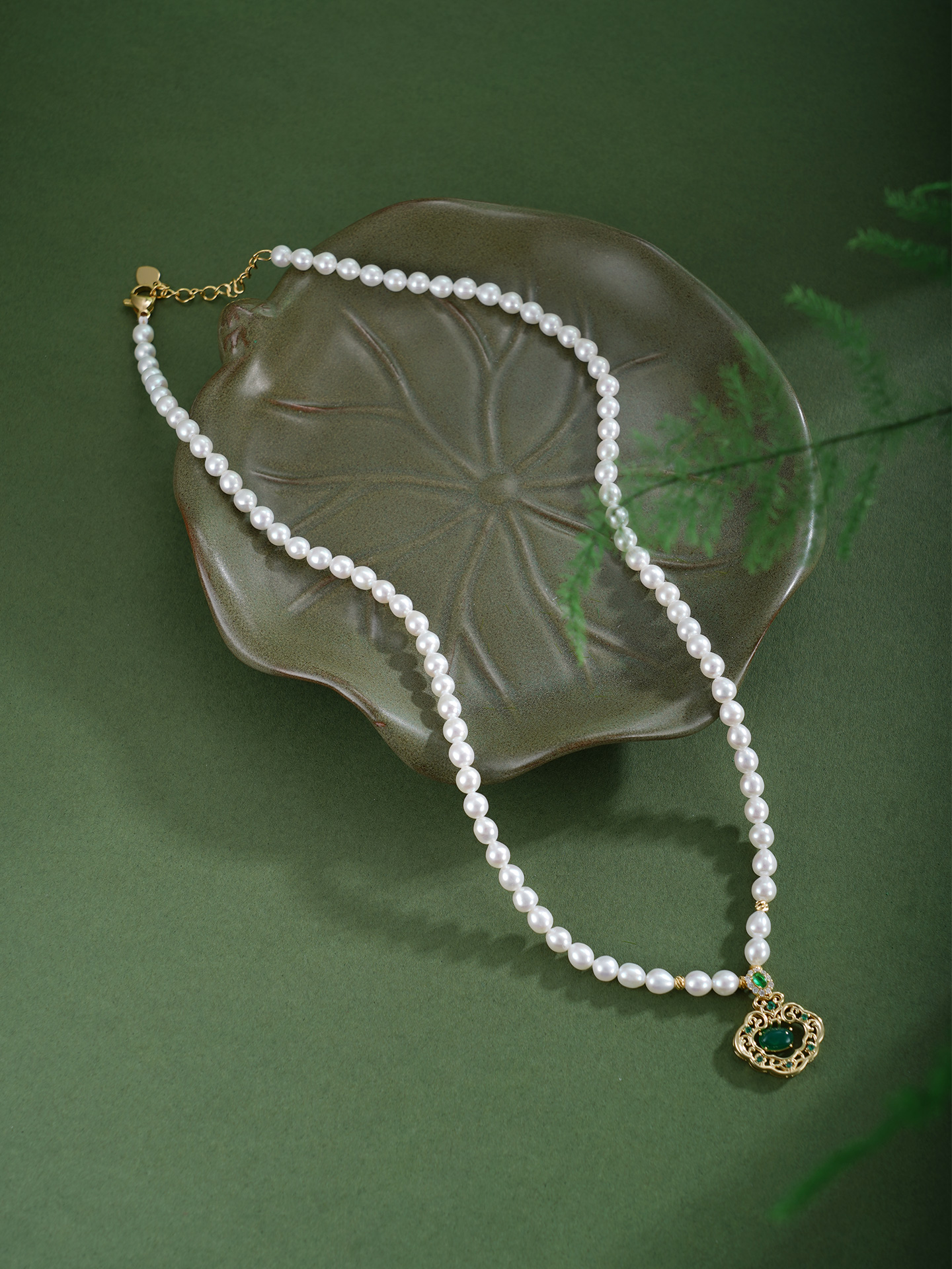 子佩集【珠锁清辉】珍珠项链【XXXL012】4mm珠绿玉髓锁镀金2512