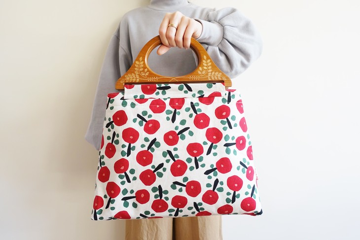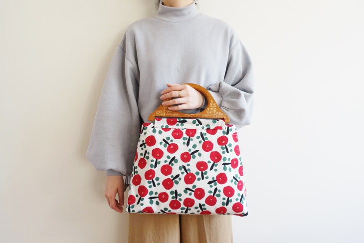 HUGOJIRO木柄手提包插画小花朵红