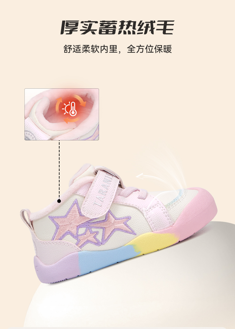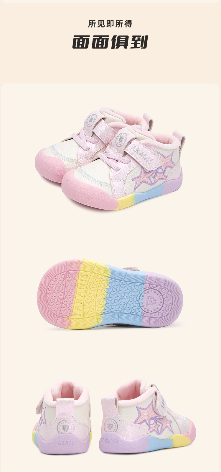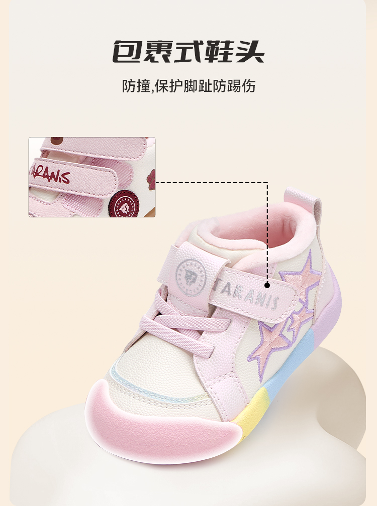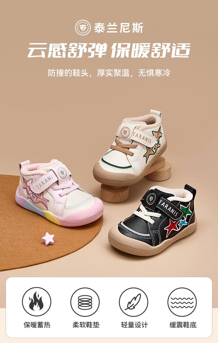 泰兰尼斯冬季新款加绒包头防踢学步鞋男女宝软底学步鞋T01T5D8332