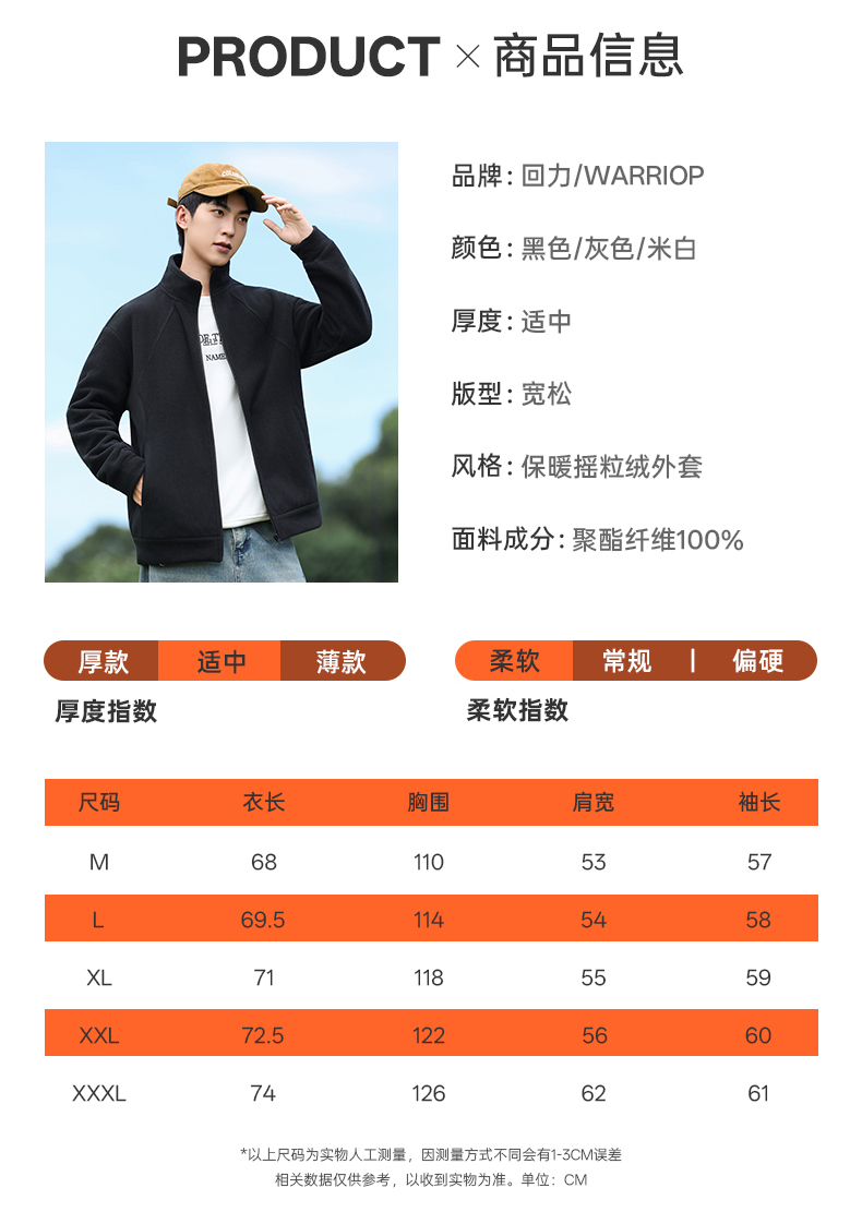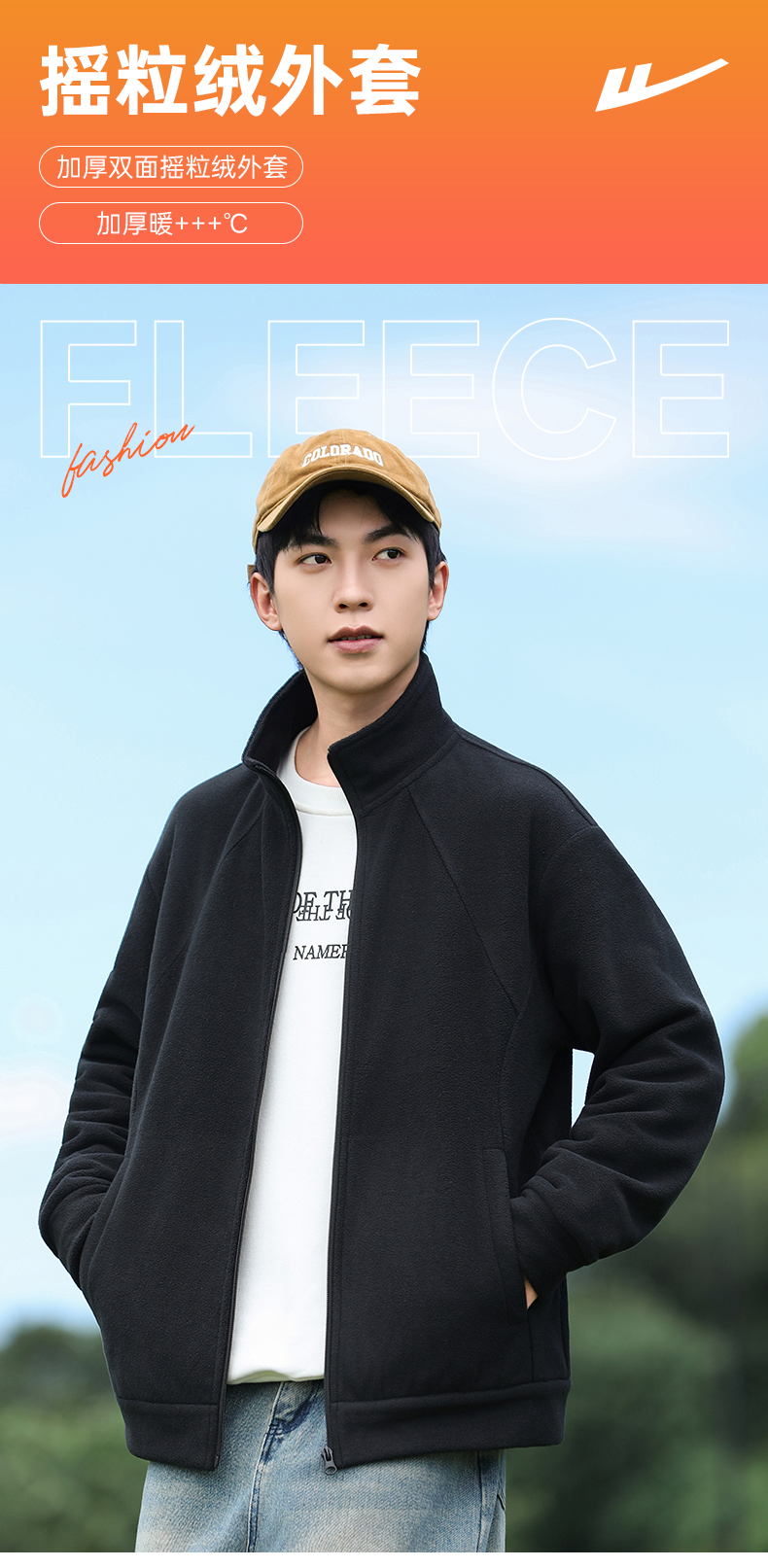 回力330G重磅摇粒绒外套男2025秋冬季加绒保暖冲锋衣内胆抓绒衣男