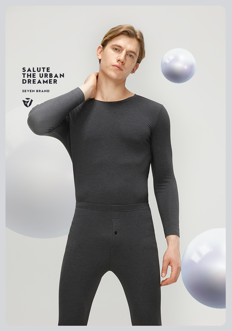 【特价】【套装】柒牌保暖套装男士保暖内衣打底衣高弹舒适圆领双面磨毛秋衣秋裤 119F72140